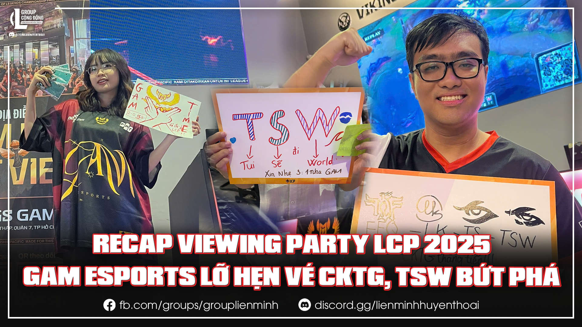 Ngày 06/09 vừa qua, cộng đồng LMHT Việt Nam đã có một buổi Viewing Party bùng nổ cảm xúc khi cùng nhau theo dõi những trận đấu căng thẳng của LCP 2025 - Giai đoạn Chung kết mùa, đồng thời cũng đã khép lại tuần thi đấu quyết định hai tấm vé đầu tiên đến CKTG 2025. Chi tiết như sau: