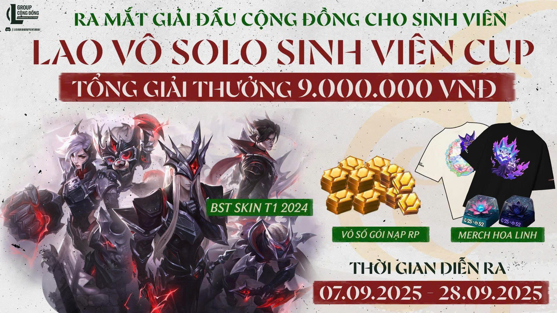 Giải đấu cộng đồng LAO VÔ SOLO SINH VIÊN CUP đã trở thành một trong những sự kiện nổi bật dành riêng cho cộng đồng sinh viên đam mê Liên Minh Huyền Thoại. Chi tiết như sau: