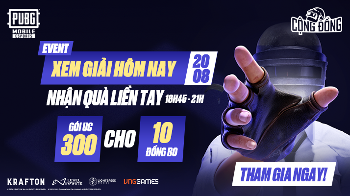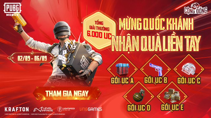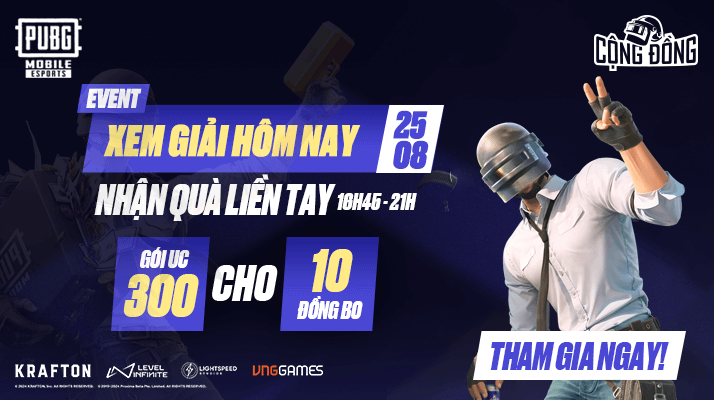 Để thể hiện sự yêu mến của đồng bo đối với cộng đồng PUBG Mobile VNG! Chỉ với vài bước đơn giản, bạn không chỉ giúp PUBG Mobile VNG giành chiến thắng mà còn có cơ hội nhận được UC và các phần quà may mắn cực hấp dẫn. Chi tiết như sau: