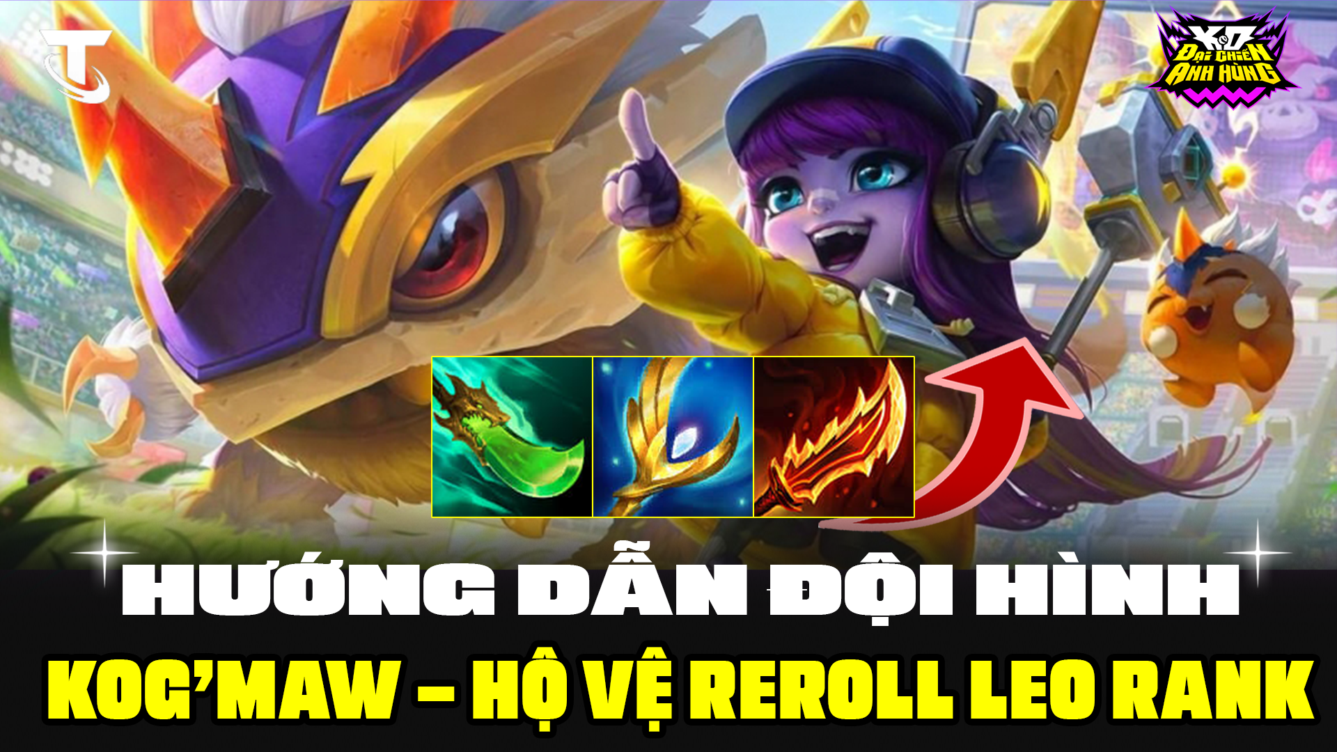 Đội hình Kog’Maw reroll mùa 15 chủ yếu xoay quanh việc sử dụng Kog’Maw làm chủ lực gây sát thương chính, kết hợp với lớp tướng Hộ Vệ để tạo tuyến phòng thủ chắc chắn. Lối chơi này yêu cầu người chơi tập trung roll lấy Kog’Maw 3 sao ở cấp 7, đồng thời xây tuyến trước bền bỉ với các tướng Hộ Vệ, thường bao gồm Neeko, K’Sante, Jarvan IV để kích hoạt hiệu ứng Hộ Vệ và buff sức mạnh cho Kog’Maw. Chi tiết như sau: