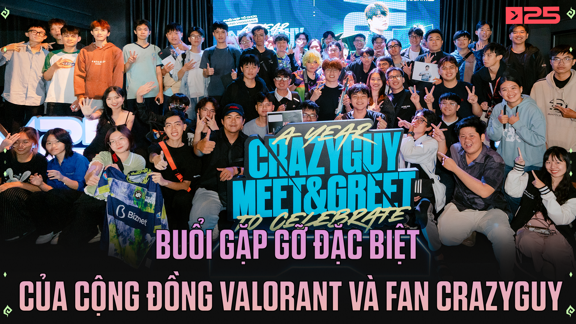 Cộng đồng VALORANT Việt Nam đã có dịp hội tụ trong sự kiện offline đặc biệt mang tên "Crazyguy meet & greet: A year to celebrate". Đây không chỉ là dịp kỷ niệm một năm hoạt động đầy ý nghĩa của Ngô "crazyguy" Công Anh – một trong những tuyển thủ VALORANT hàng đầu Việt Nam, mà còn là cơ hội để các fan hâm mộ, người yêu mến thể thao điện tử có những trải nghiệm khó quên bên nhau, kết nối và chia sẻ đam mê. Chi tiết như sau: