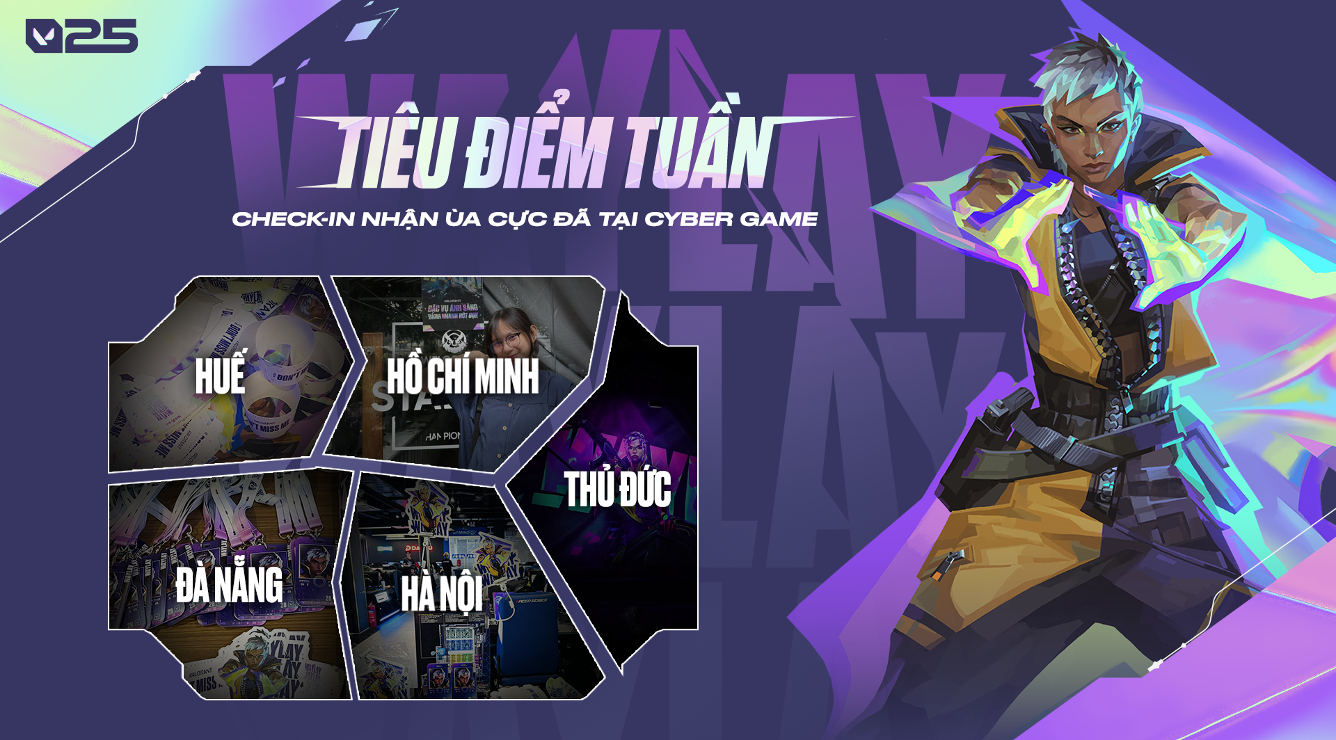 VALORANT tiếp tục chuỗi sự kiện mừng sinh nhật 5 tuổi bằng hoạt động check-in 10 cyber trên toàn quốc nhận quà chỉ diễn ra duy nhất trong ngày 10/05. Chi tiết như sau: