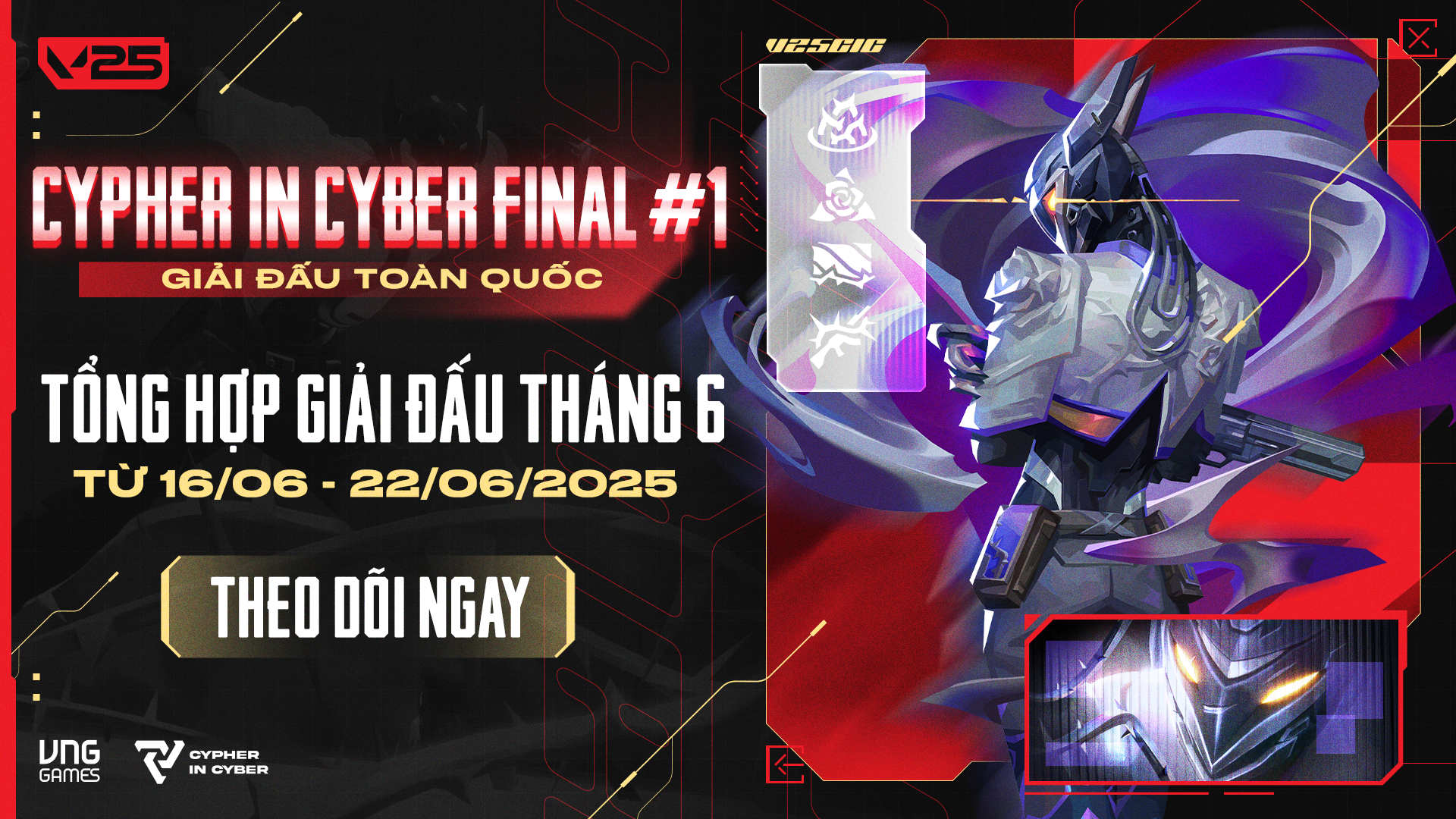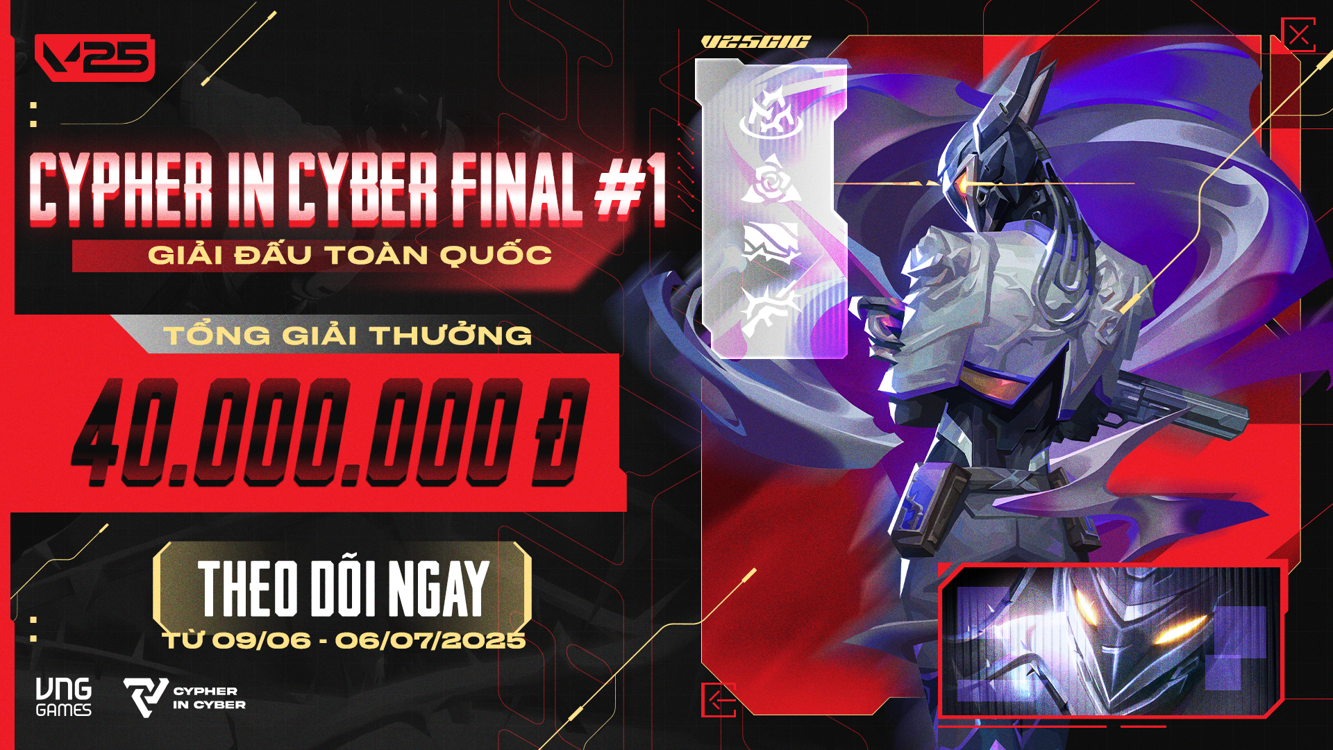 Cypher in Cyber Final #1 là giải đấu cộng đồng diễn ra theo quý, quy tụ các đội tuyển vô địch từ hệ thống phòng máy CIC – nhằm tạo sân chơi cạnh tranh chuyên nghiệp và gắn kết cộng đồng VALORANT trên toàn quốc. Chi tiết như sau: