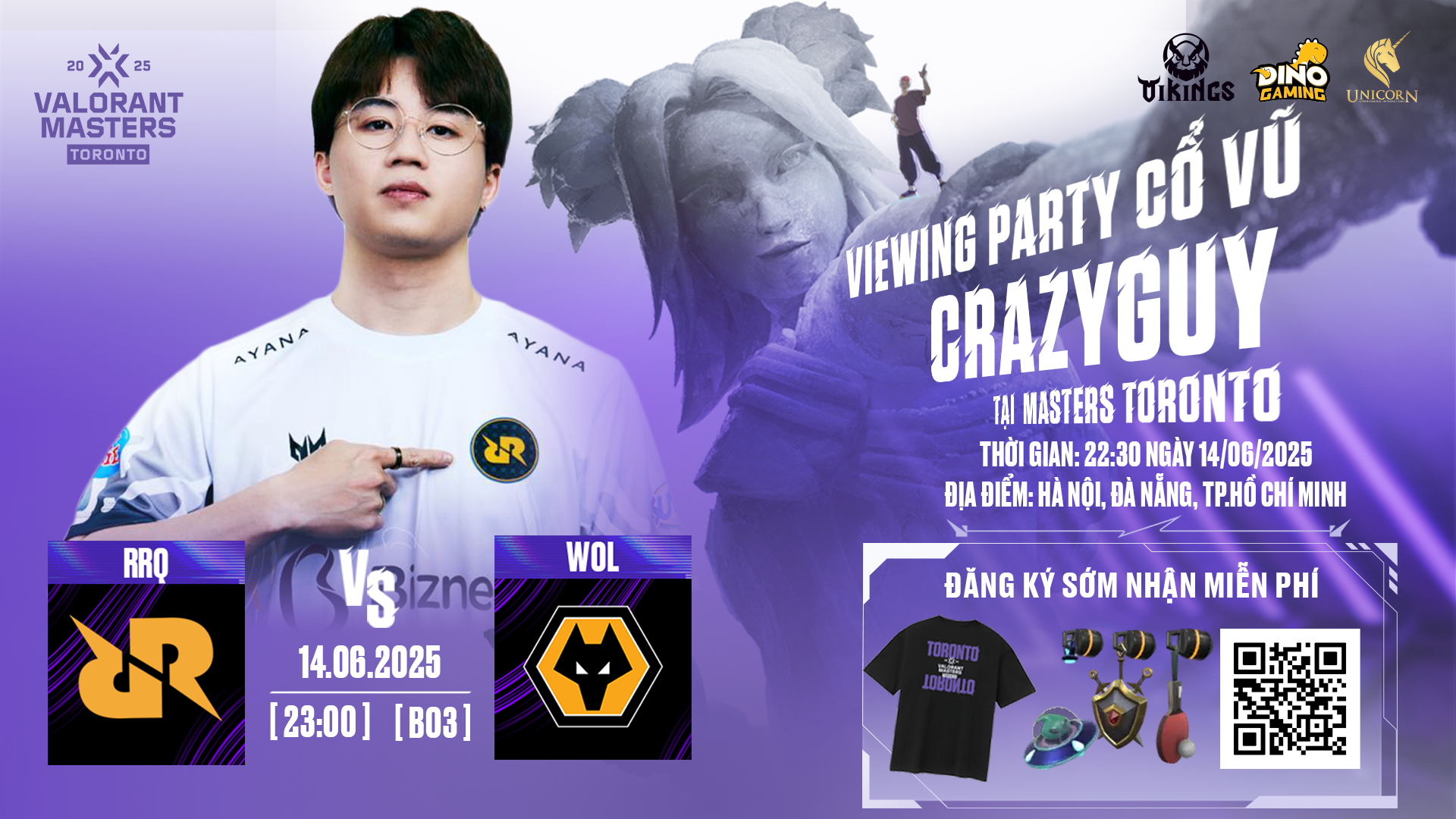 Ngày 14 tháng 6 năm 2025 đã trở thành một ngày đáng nhớ trong lịch sử eSports Việt Nam khi cộng đồng VALORANT cả nước tập trung tại ba thành phố lớn để cổ vũ tuyển thủ Ngô "crazyguy" Công Anh trong hành trình chinh phục Masters Toronto. Chi tiết như sau: