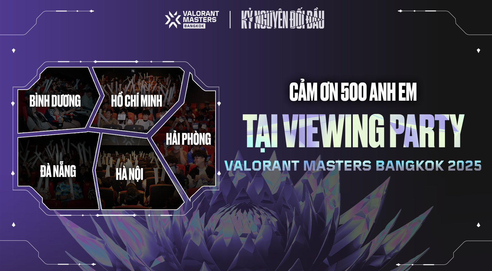 Cộng đồng VALORANT Việt Nam vừa trải qua một ngày hội bùng nổ khi VNGGames tổ chức Viewing Party Chung kết Masters Bangkok, thu hút gần 1000 người hâm mộ cuồng nhiệt. Sự kiện diễn ra đồng loạt tại CGV Cinemas trên toàn quốc, mang đến những trải nghiệm thể thao điện tử đỉnh cao, không thua kém gì bầu không khí sôi động tại Bangkok! Đặc biệt, không khí tại Hà Nội và TP.HCM đã thực sự "nóng" hơn bao giờ hết khi vé "bay" sạch chỉ sau 11 giờ mở bán! Chi tiết như sau: