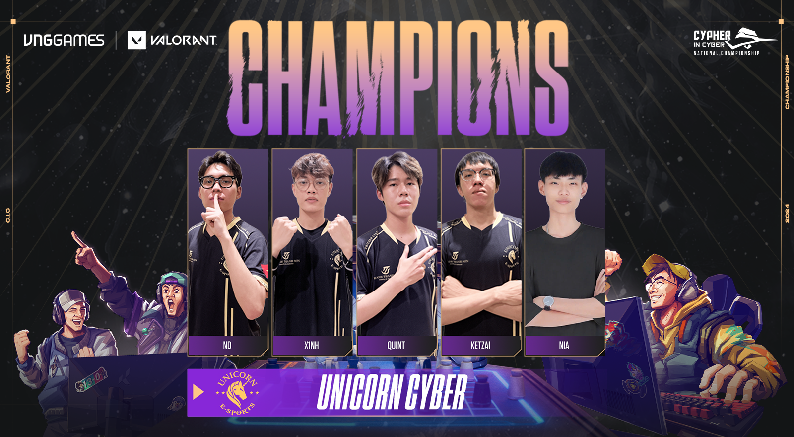 Giải đấu Cypher In Cyber đầy kịch tính đã chính thức khép lại tại sân khấu Hòa Bình, chứng kiến màn trình diễn đỉnh cao và chiến thắng thuyết phục của đội tuyển Unicorn Cyber. Với chiến thuật sắc bén và kỹ năng cá nhân vượt trội, Unicorn Cyber đã đánh bại mọi đối thủ trên con đường đến ngôi vương, đặc biệt là chiến thắng áp đảo 2-0 trong trận chung kết. Chi tiết như sau:
