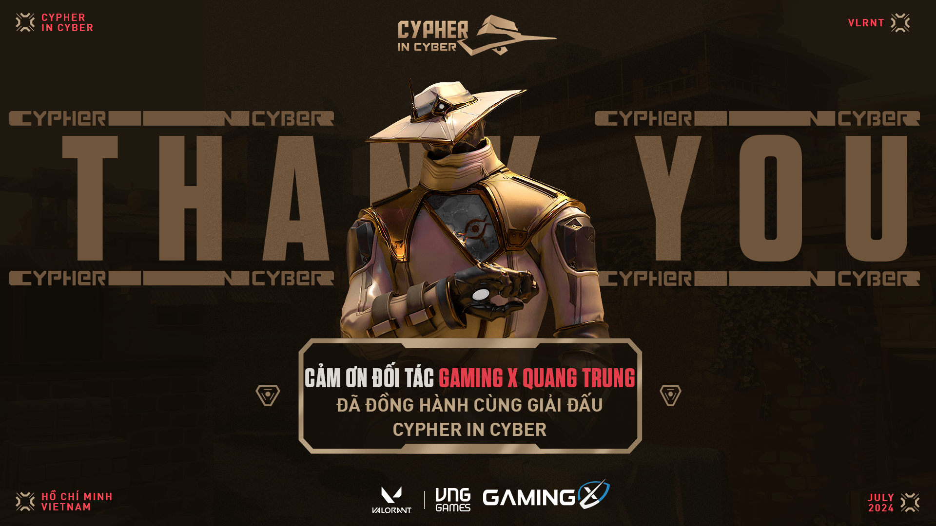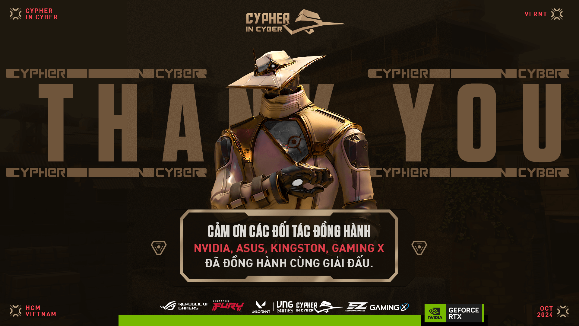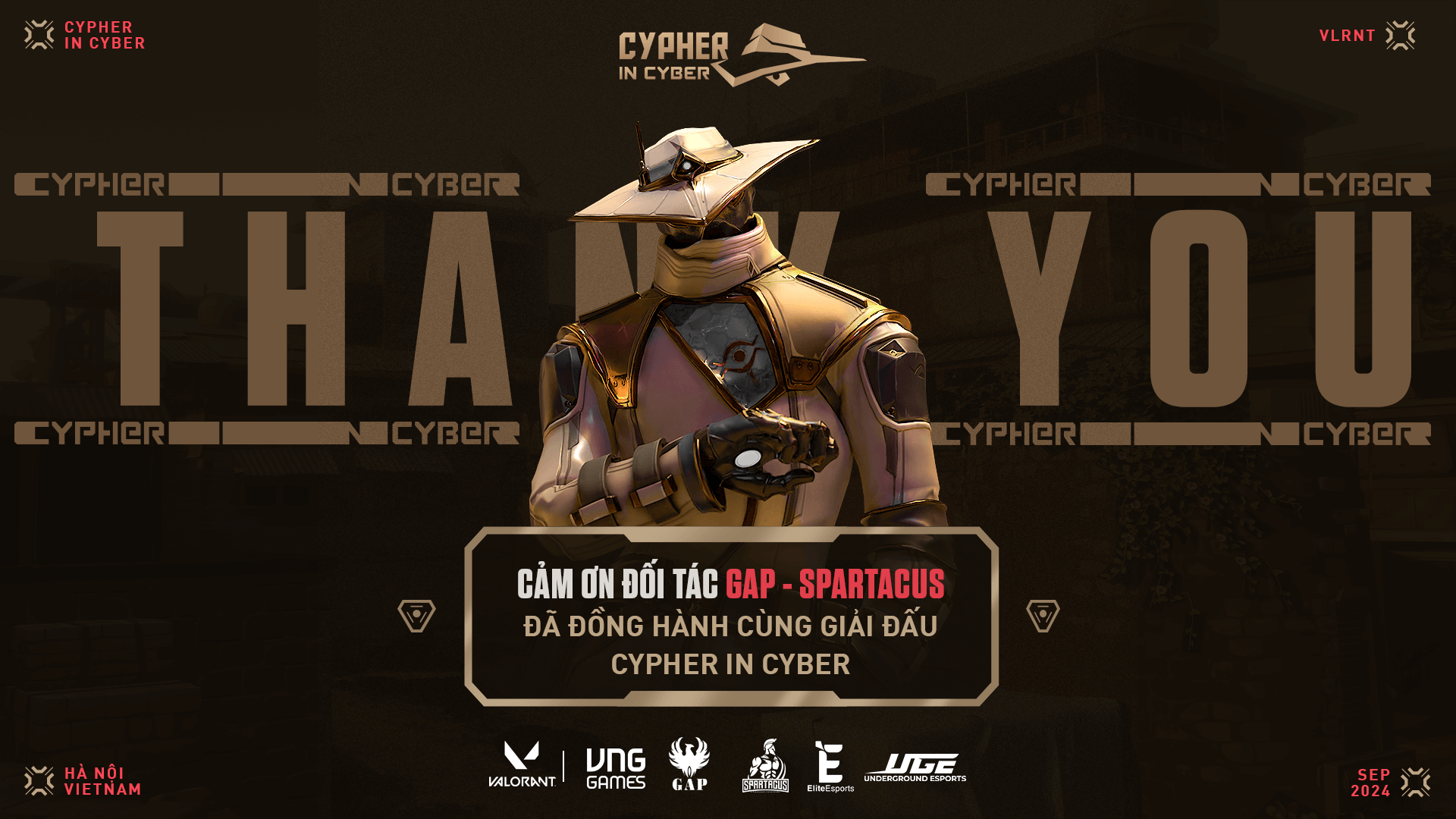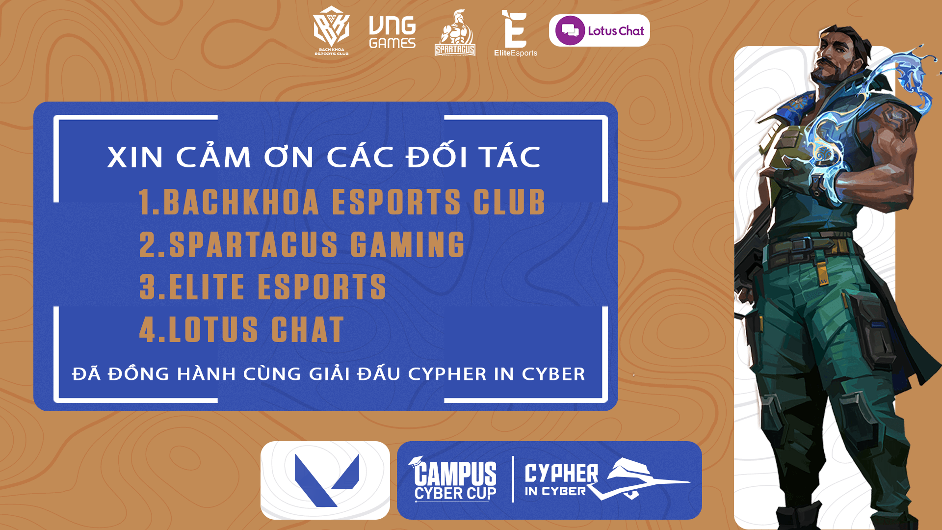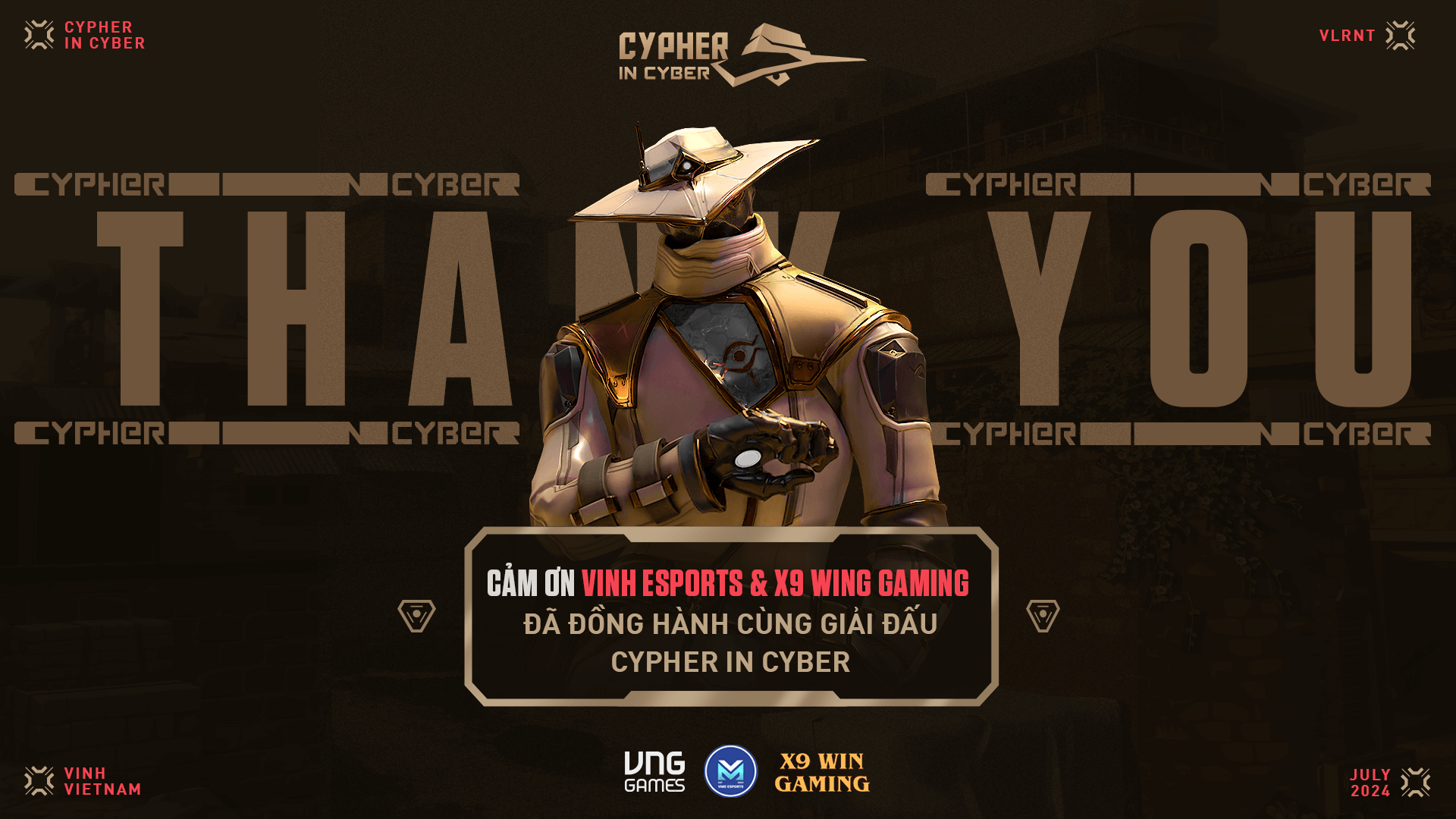 Lời đầu tiên, BTC giải đấu Cypher In Cyber xin chân thành cảm ơn sự quan tâm, ủng hộ và tham gia nhiệt tình của các bạn trong giải đấu VINH ESPORTS FESTIVAL - VALORANT. Chi tiết như sau: