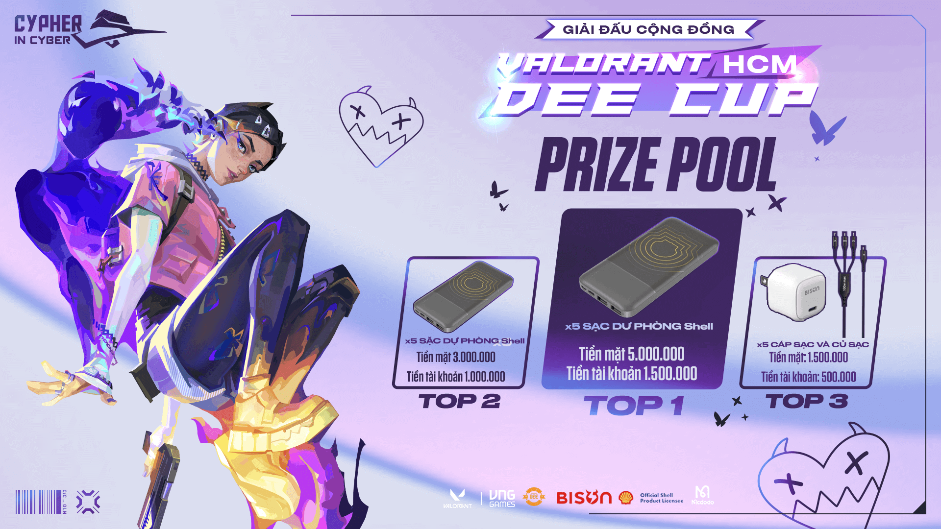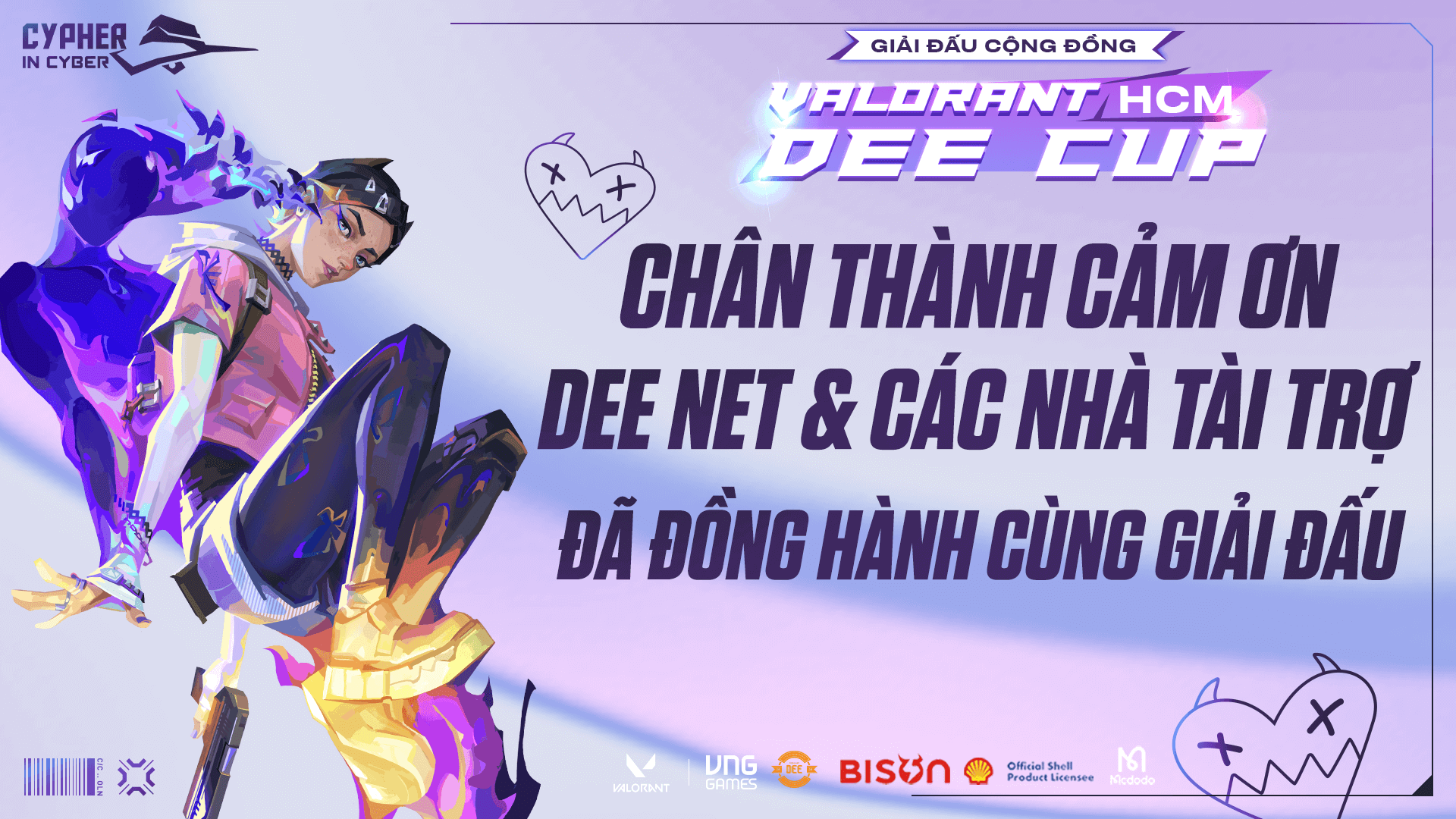 Giải đấu VALORANT Dee Cup chính thức khởi động tại các chi nhánh của Dee Net với tổng giải thưởng lên đến 20.000.000đ do Dee Net cùng với Official Shell, Bison và Mcdodo tổ chức. Chi tiết như sau: