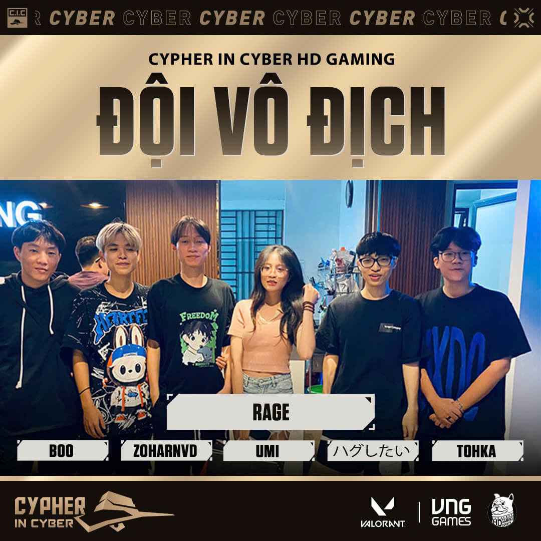 Tân Quán Quân Giải CYPHER IN CYBER - HD GAMING VALORANT SEASON IV gọi tên đội tuyển RAGE. Chi tiết như sau: