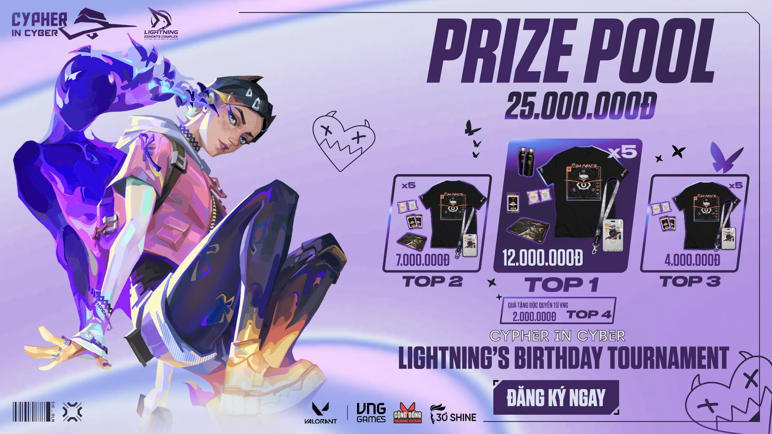 Giải đấu Cộng đồng Cypher In Cyber x LightNing's BIRTHDAY TOURNAMENT vẫn đang trong thời gian mở cổng đăng ký. Với những phần thưởng "xịn xò" từ tiền mặt đến giờ chơi, voucher và quà tặng độc quyền từ NPH VNG, cơ hội thành nhà vô địch đang chờ đón bạn!