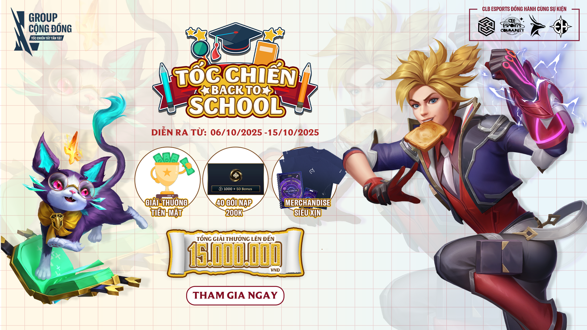 Khởi động năm học mới cực “chất” với Back to School 2025 cùng Liên Minh Huyền Thoại: Tốc Chiến! Tham gia ngay chuỗi hoạt động sôi động với các CLB Esports hàng đầu cả nước, check-in nhận quà cực hấp dẫn và rủ bạn bè mới cùng chinh chiến. Đừng bỏ lỡ cơ hội “đốt cháy” mùa tựu trường với những phần thưởng giá trị và bầu không khí Esports đầy nhiệt huyết! Chi tiết như sau: