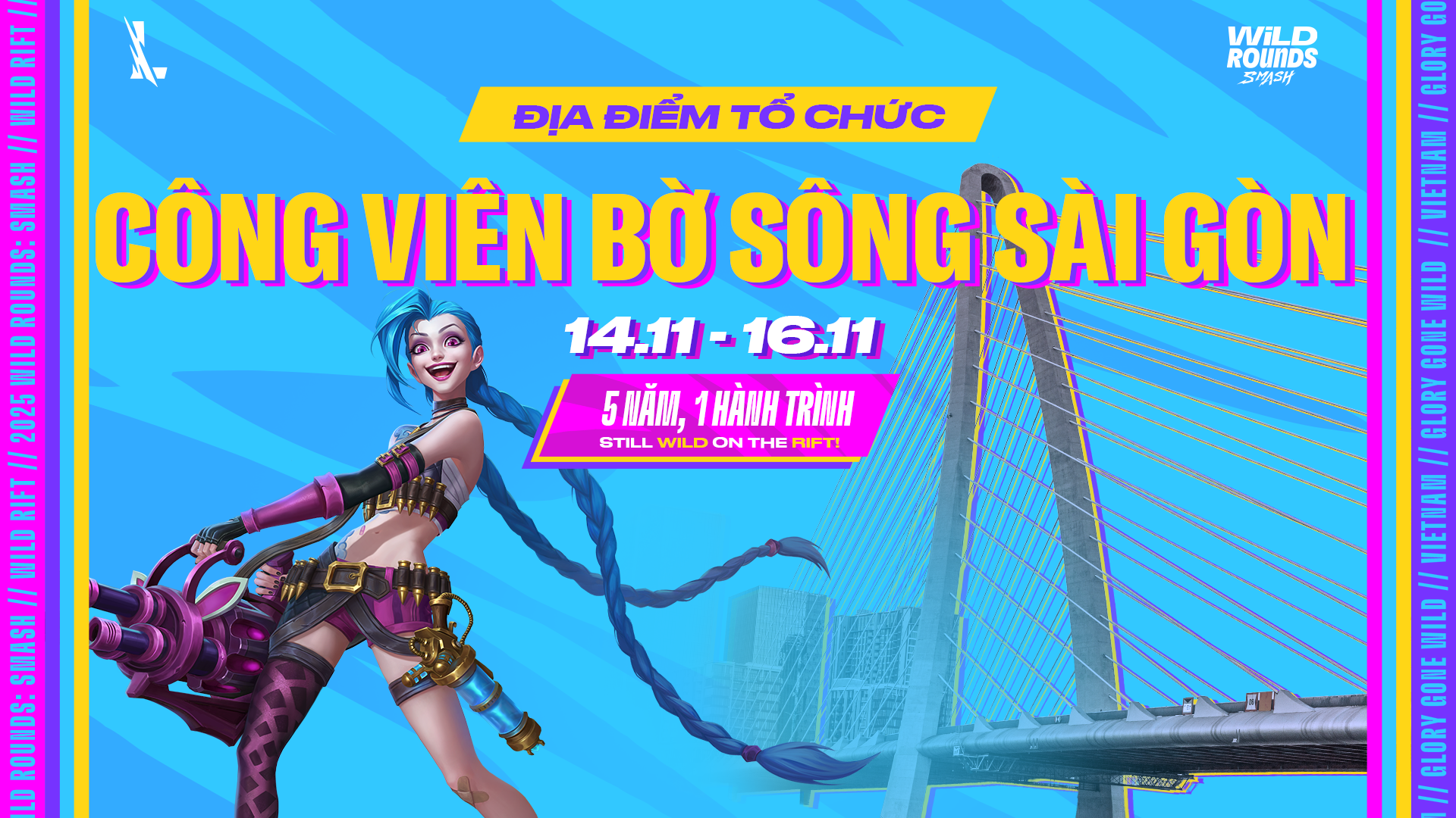 WILD ROUNDS: SMASH 2025 – lễ hội mừng sinh nhật 5 năm Liên Minh: Tốc Chiến do Riot tổ chức, quy mô toàn cầu, lần đầu diễn ra ngoài trời tại Công viên Bờ Sông Sài Gòn với hàng loạt hoạt động, quà tặng độc quyền và 200 vé VIP chỉ dành cho game thủ may mắn! Chi tiết như sau: