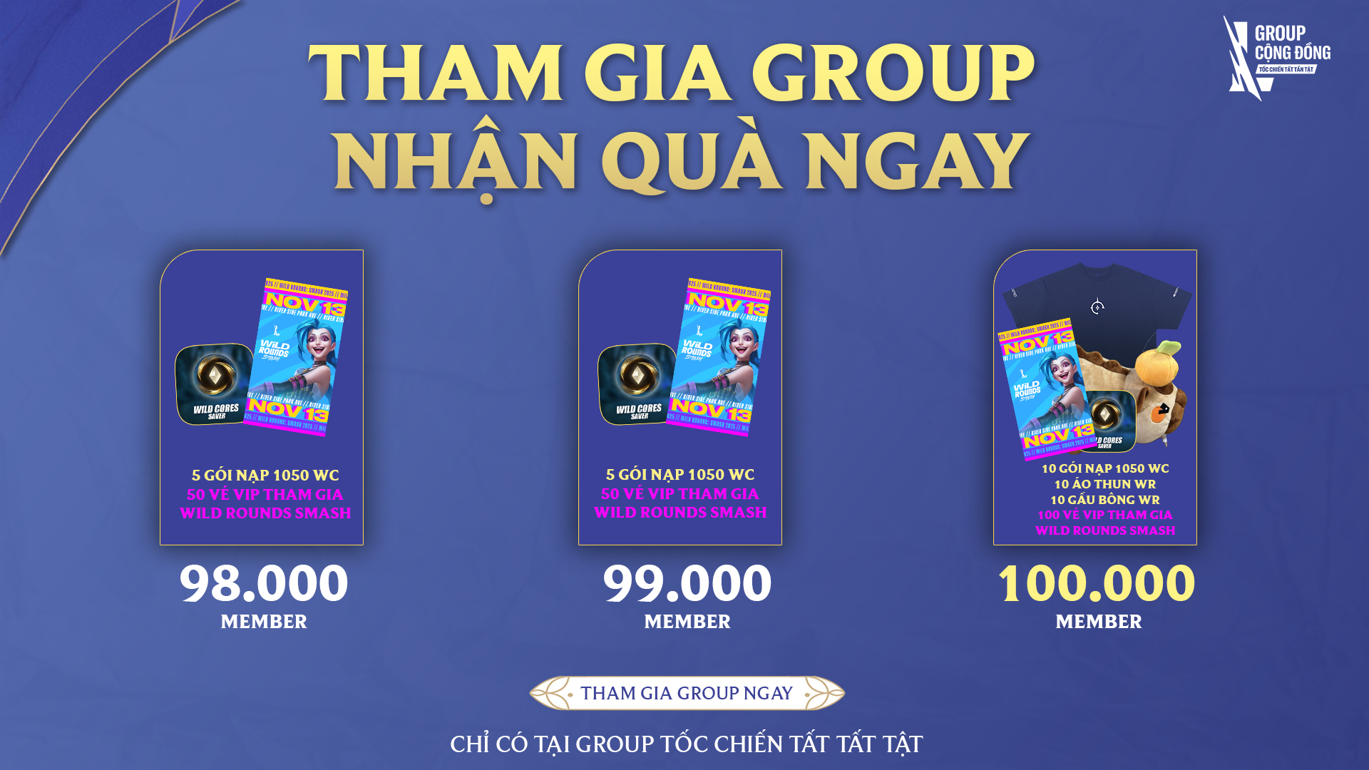 Cộng đồng Tốc Chiến Tất Tần Tật đang tiến gần đến cột mốc đáng nhớ 100.000 thành viên – một hành trình bền bỉ và đầy tự hào của anh em game thủ Tốc Chiến! Để chào mừng dấu mốc đặc biệt này, sự kiện WILD ROUNDS: SMASH mang đến cơ hội nhận loạt phần quà cực chất dành cho những người đồng hành và đóng góp trong suốt thời gian qua. Chi tiết như sau:
