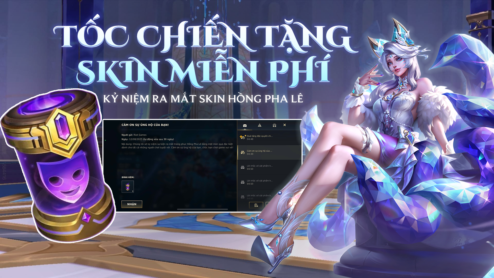 Sự kiện hiếm có khó tìm đã chính thức chạm ngõ Tốc Chiến! Nhân dịp ra mắt bộ sưu tập HỒNG PHA LÊ cuối cùng – vũ trụ lấp lánh nhất năm, Tốc Chiến dành tặng người chơi RƯƠNG SKIN TÍM NGẪU NHIÊN MIỄN PHÍ! Chi tiết như sau: