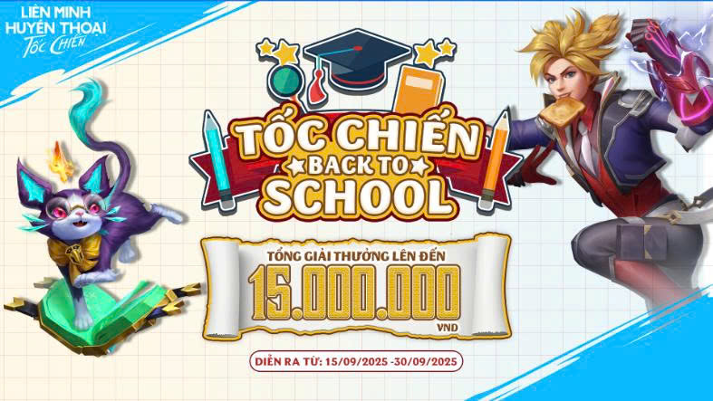 Mùa tựu trường 2025 vừa qua, cộng đồng Tốc Chiến sinh viên trên toàn quốc đã cùng nhau tạo nên một chiến dịch Back To School bùng nổ nhất từ trước đến nay. Từ những khoảnh khắc check-in rực rỡ, màn giao lưu sôi động đến tinh thần kết nối của các CLB Esports trường đại học, tất cả đã vẽ nên một bức tranh sinh viên Tốc Chiến trẻ trung, sáng tạo và nhiệt huyết! Chi tiết như sau: