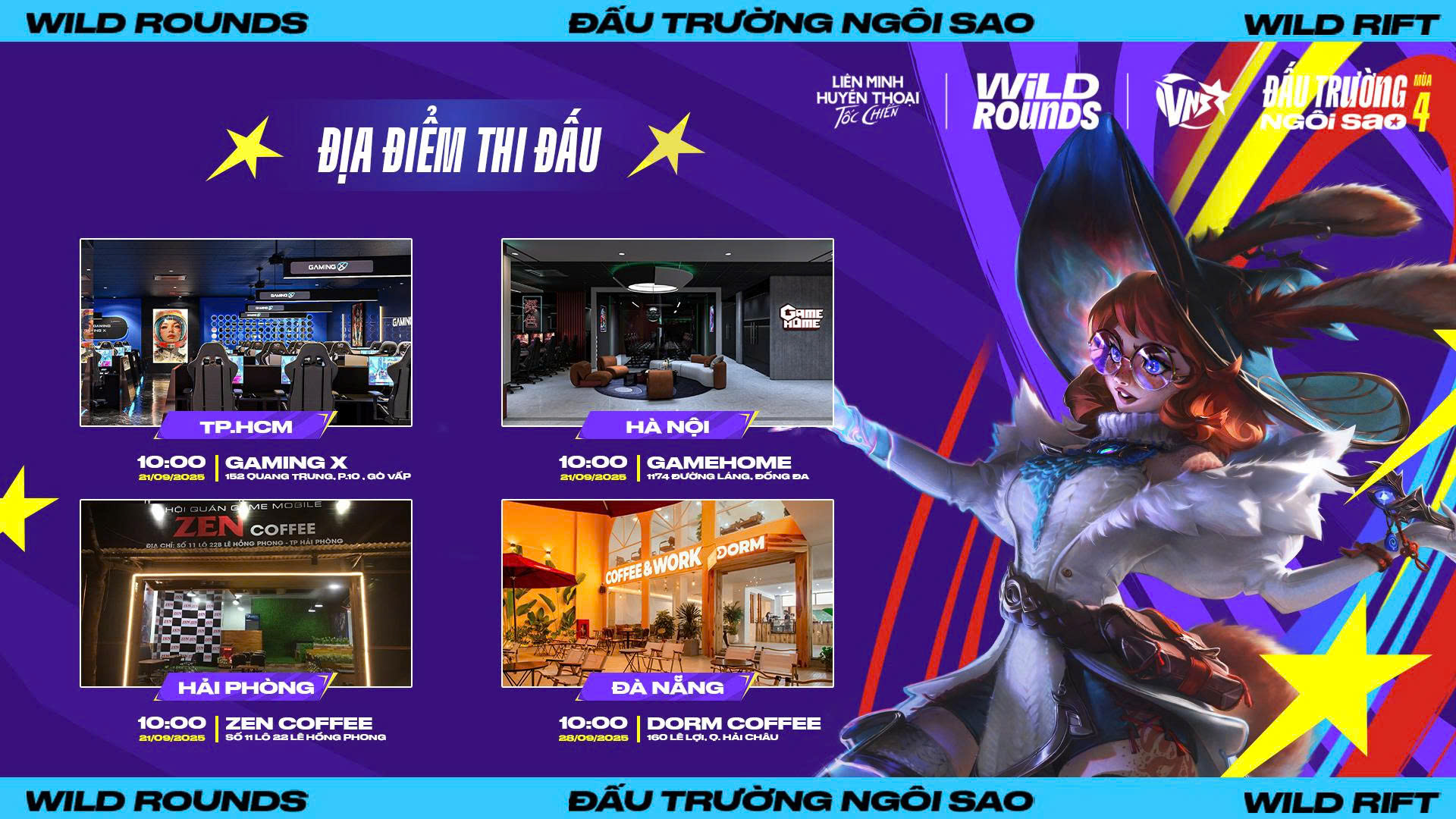 Wild Rounds – Đấu Trường Ngôi Sao Mùa 4 sẽ chính thức “hạ cánh” tại 4 thành phố lớn, hứa hẹn mang đến không khí bùng nổ và những trận đấu hấp dẫn. Chi tiết như sau:
