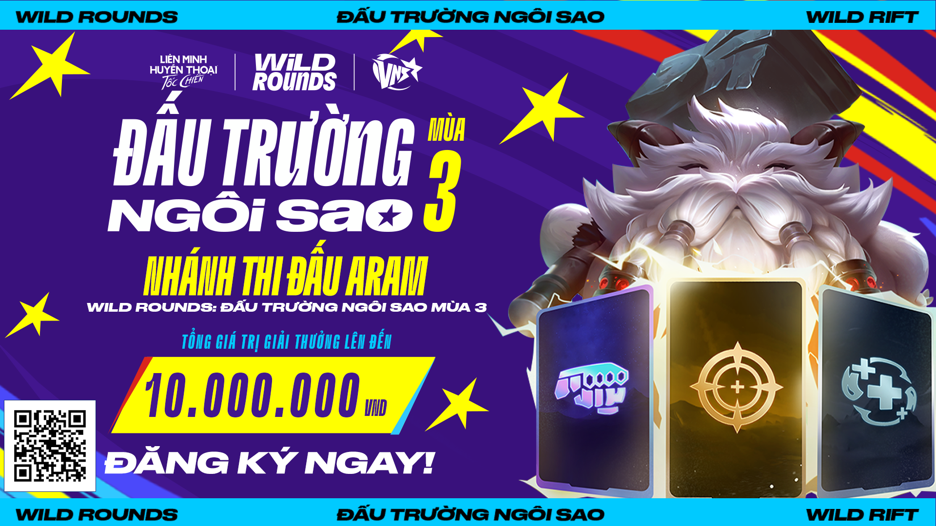 Wild Rounds: Đấu Trường Ngôi Sao Mùa 4 đã chính thức khởi động, mang bầu không khí cuồng nhiệt lan rộng khắp cộng đồng Tốc Chiến trên cả nước. Năm nay, giải đấu hứa hẹn bùng nổ hơn bao giờ hết khi vòng loại khu vực sẽ được tổ chức trực tiếp tại 5 thành phố lớn. Chi tiết như sau: