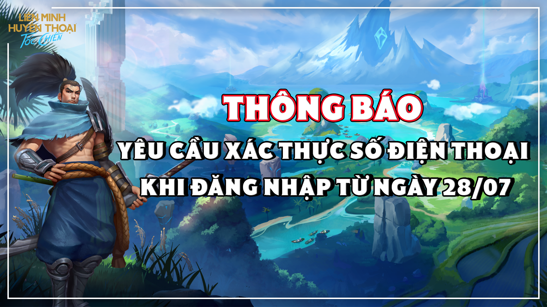 Theo thông tin từ đơn vị phát hành Liên Minh Huyền Thoại: Tốc Chiến tại Việt Nam, trong thời gian tới, người chơi sẽ cần thực hiện xác thực số điện thoại để tiếp tục đăng nhập và trải nghiệm trò chơi. Chi tiết như sau:
