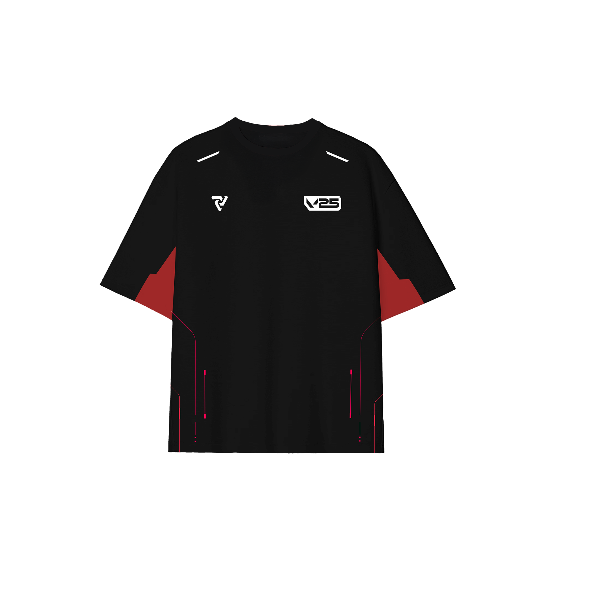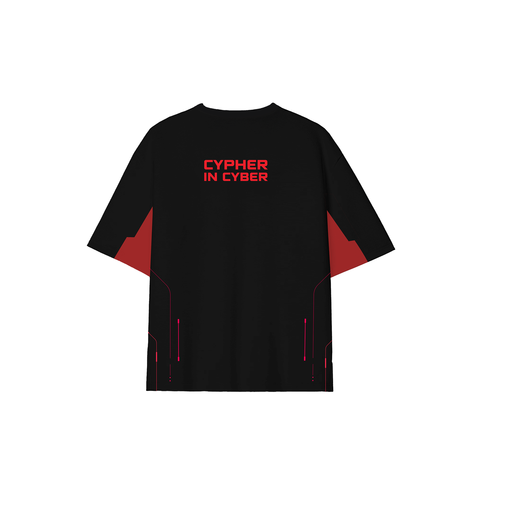 Áo thun vật phẩm độc quyền trong bộ sưu tập đậm dấu ấn phòng máy và cộng đồng VALORANT. Thiết kế lấy cảm hứng từ logo mới của giải đấu với tông màu đỏ đen hiện đại, áo thun sở hữu đường nét cá tính, trang trí họa tiết logo sự kiện “Cypher In Cyber” ấn tượng.