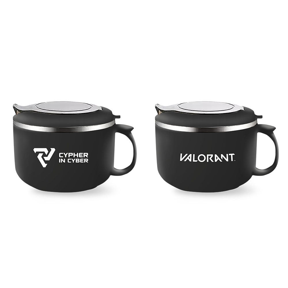 Hộp cơm vật phẩm độc quyền trong bộ sưu tập đậm dấu ấn phòng máy và cộng đồng VALORANT. Thiết kế lấy cảm hứng từ Agent Cypher với tông màu xanh bạc hiện đại, hộp cơm sở hữu đường nét bo tròn cá tính, trang trí họa tiết chip vi mạch và logo sự kiện “Cypher In Cyber”.