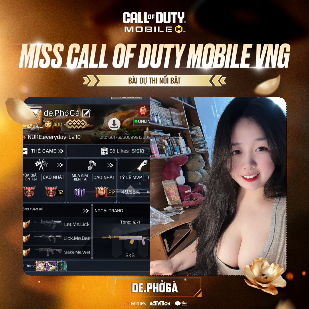 Hoạt động 20/10 năm nay đã chứng kiến hàng loạt gương mặt Miss Call of Duty tỏa sáng, mỗi người một phong cách, một dấu ấn riêng – từ kỹ năng chiến đấu ấn tượng, phong thái tự tin đến nét cuốn hút đậm chất chiến binh.