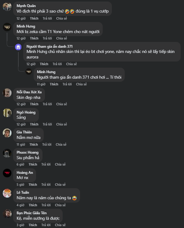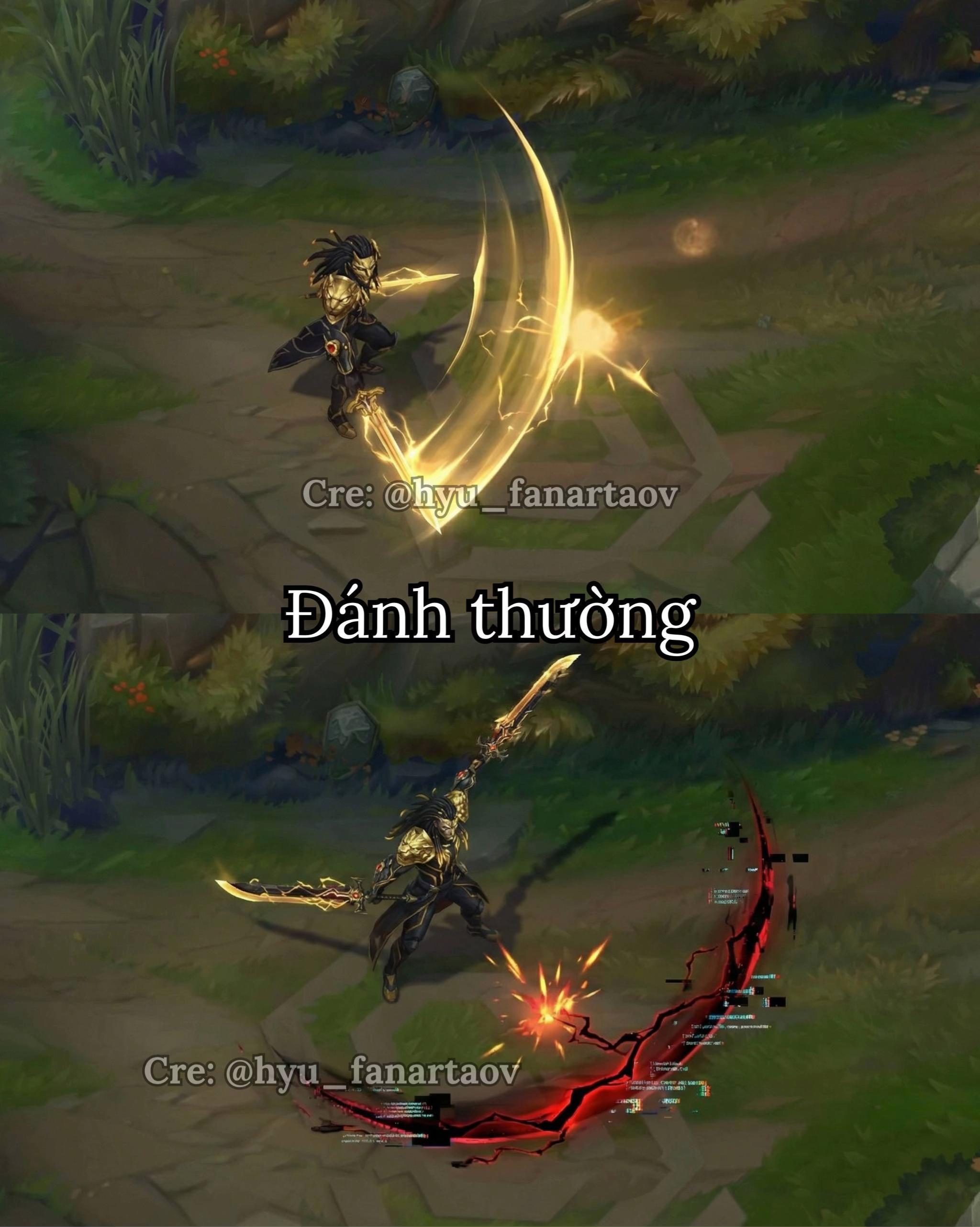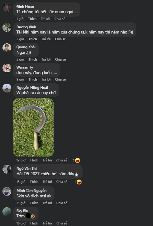 - "Skin này thay vì cầm kiếm cầm 2 cái liềm, farm lính thay vì có hình đồng vàng thì lên hình bông lúa. Fan có skin khác gì nông hoàng đâu"