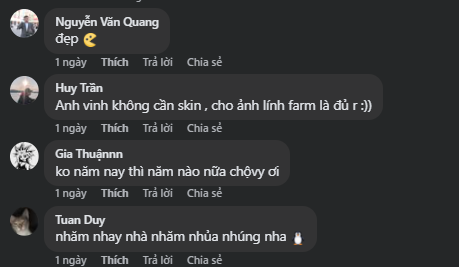 - "Anh vinh không cần skin , cho ảnh lính farm là đủ r :))"