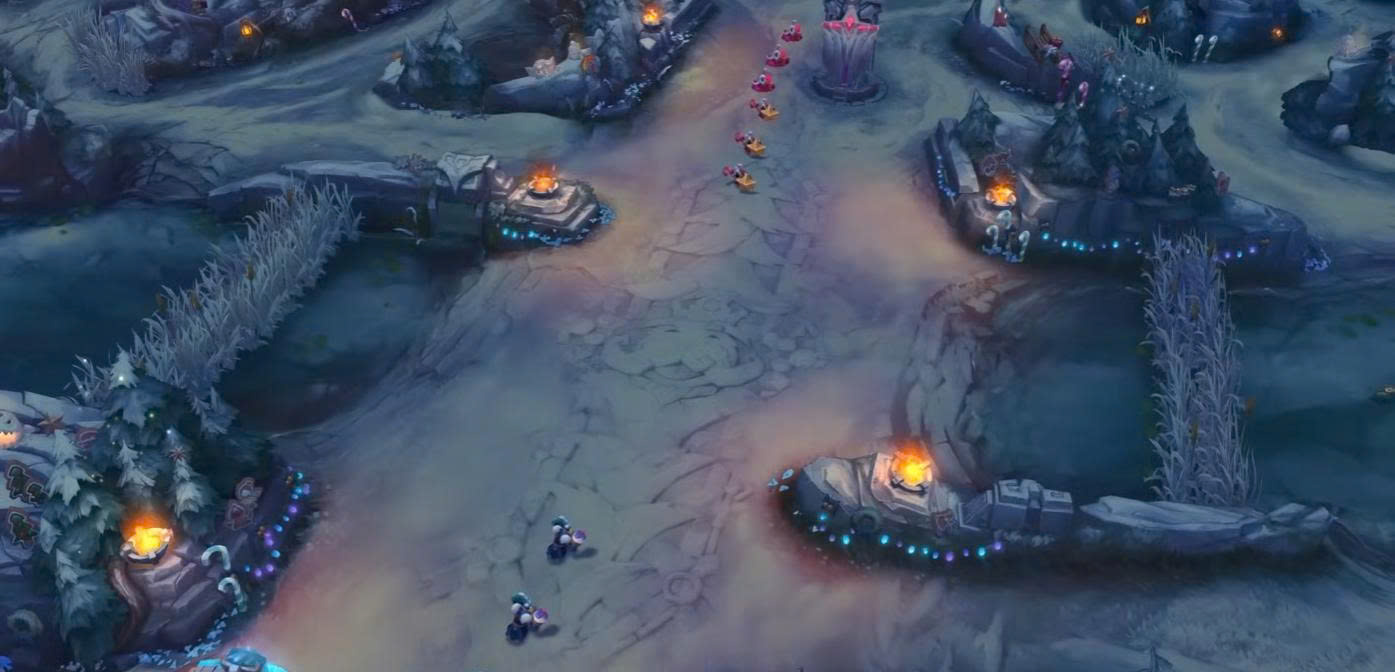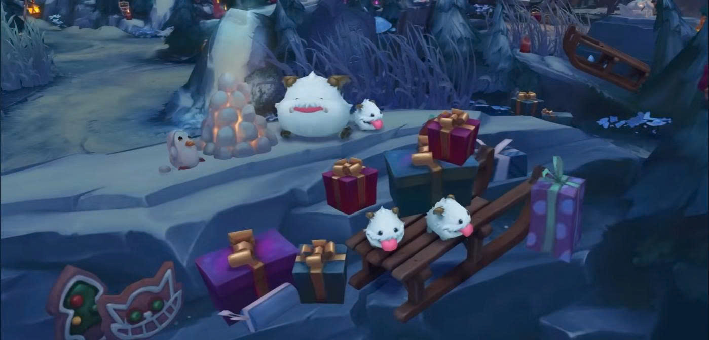Khi ấy, Summoner’s Rift khoác lên diện mạo mới với cây thông Noel, kẹo gậy, Poro tuyết và hàng loạt trang phục Giáng sinh kinh điển như Nidalee Thỏ Tuyết hay Nunu Công Xưởng.