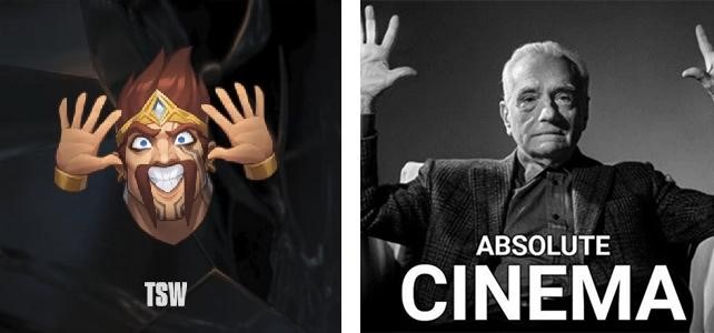 Ý nghĩa: dùng để tán dương những pha highlight “mãn nhãn” trong LMHT — từ giao tranh rực lửa đến cú outplay hoàn hảo. Một cách dí dỏm để khen ngợi khoảnh khắc khiến fan phải thốt lên: “Đúng là điện ảnh đỉnh cao!"