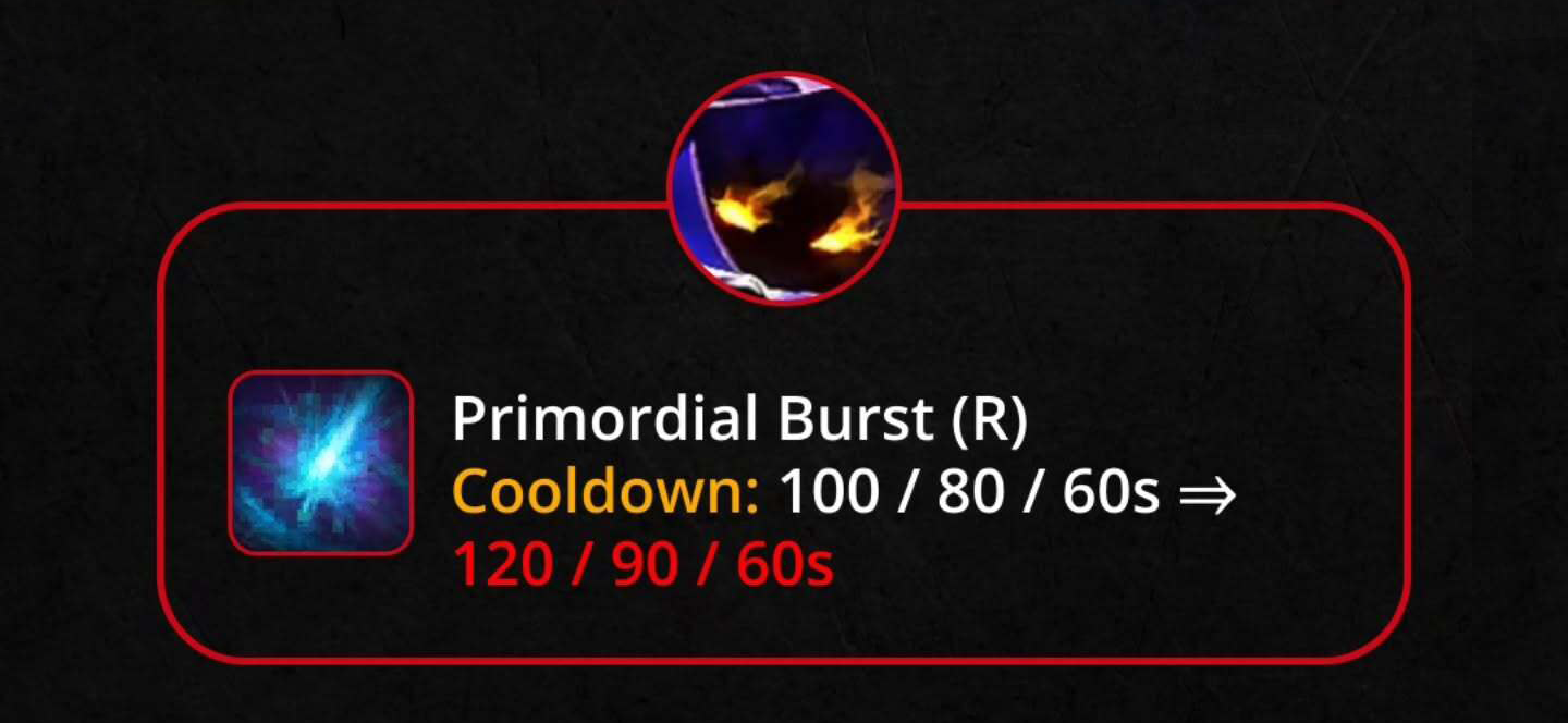 R - Vụ Nổ Vũ Trụ: Thời gian hồi chiêu tăng từ 100/80/60s → 120/90/60s.