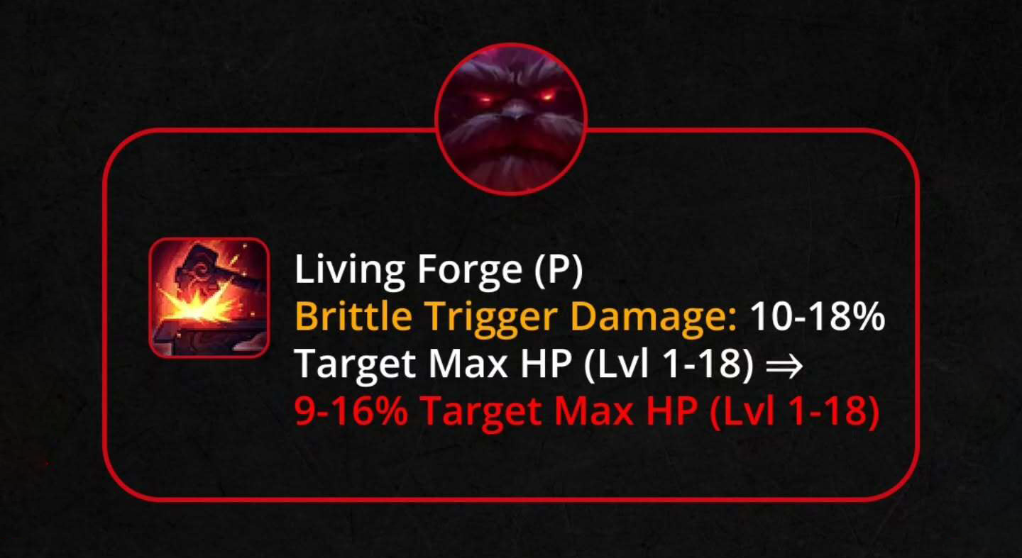 Nội tại - Nóng Giòn: Sát thương phép theo % máu tối đa giảm từ 10 - 18% → 9 - 16% (theo cấp).