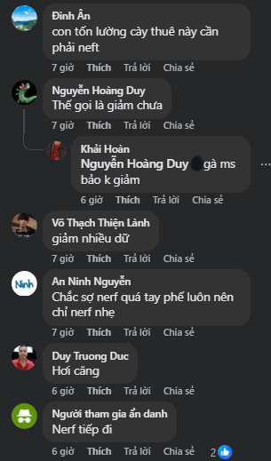 - "Chắc sợ nerf quá tay phế luôn nên chỉ nerf nhẹ"
