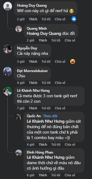 - "Cả meta được 3 con tank giờ nerf thì còn 2 con"