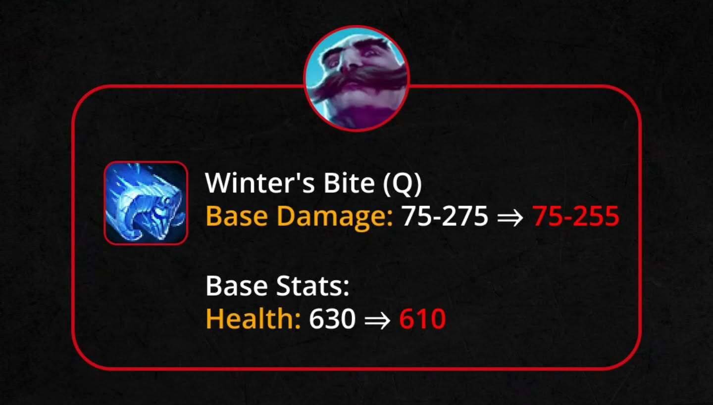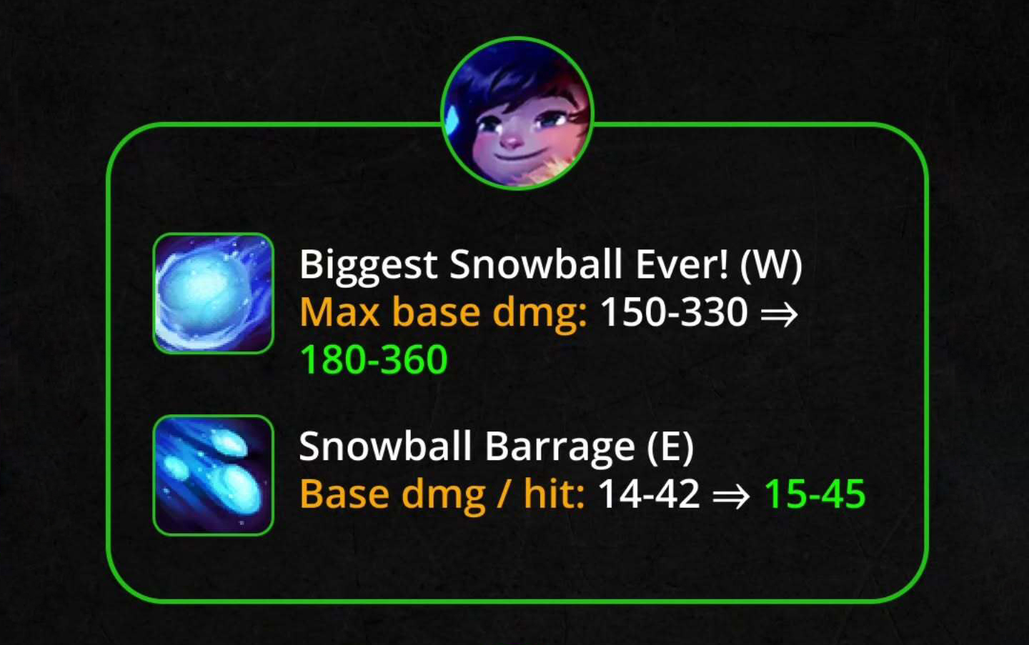 E – Pháo Tuyết: Sát thương mỗi quả cầu 14/21/28/35/42 → 15/22.5/30/37.5/45