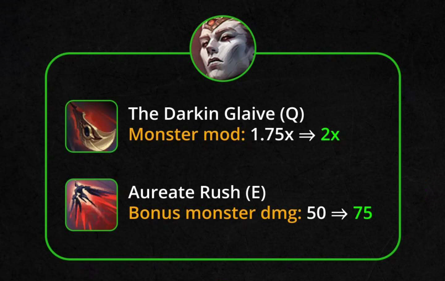 Q – Đại Đao Darkin: Sát thương lên quái rừng 175% → 200%