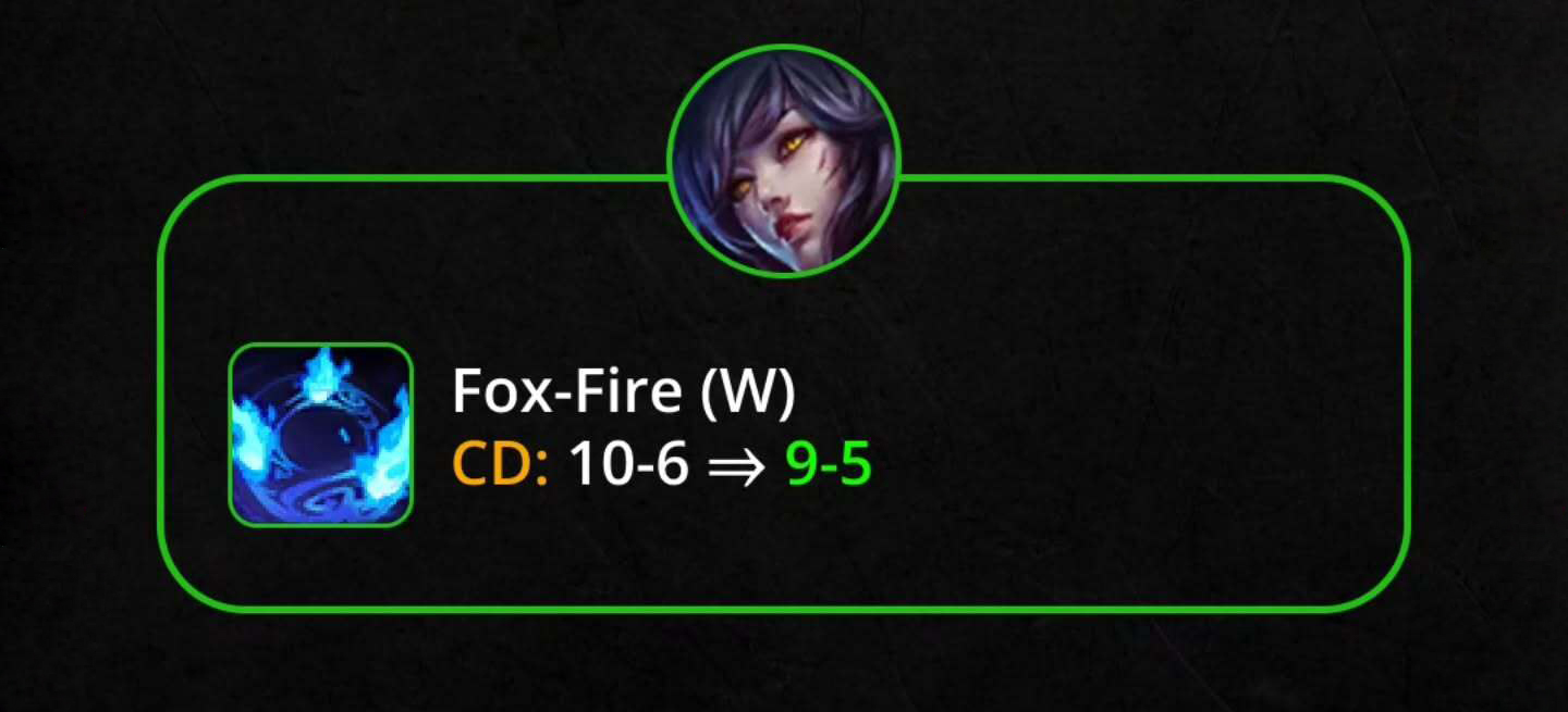W – Lửa Hồ Ly: Hồi chiêu giảm từ 10/9/8/7/6s → 9/8/7/6/5s