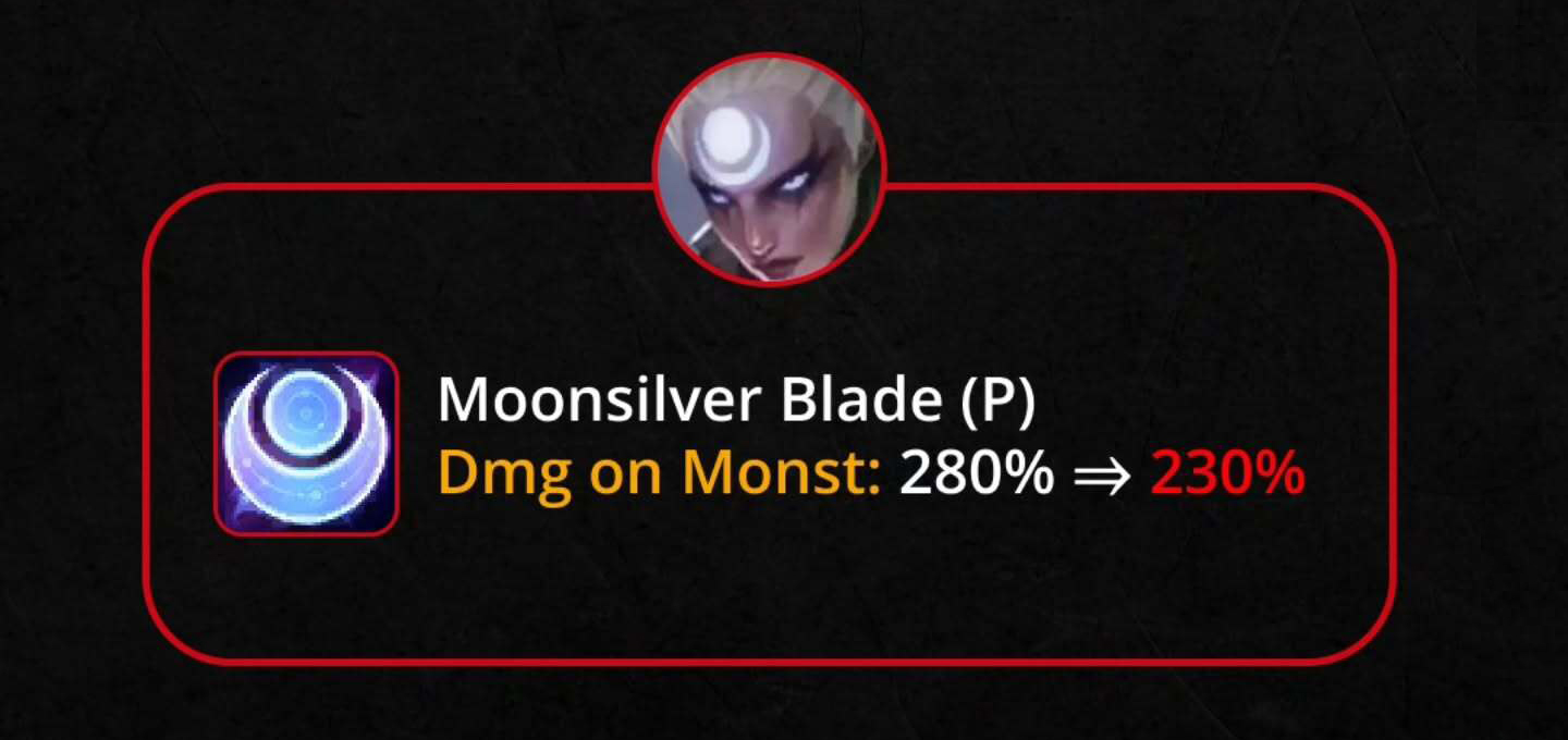 Nội tại – Gươm Ánh Trăng: Sát thương lên quái rừng 280% → 230%
