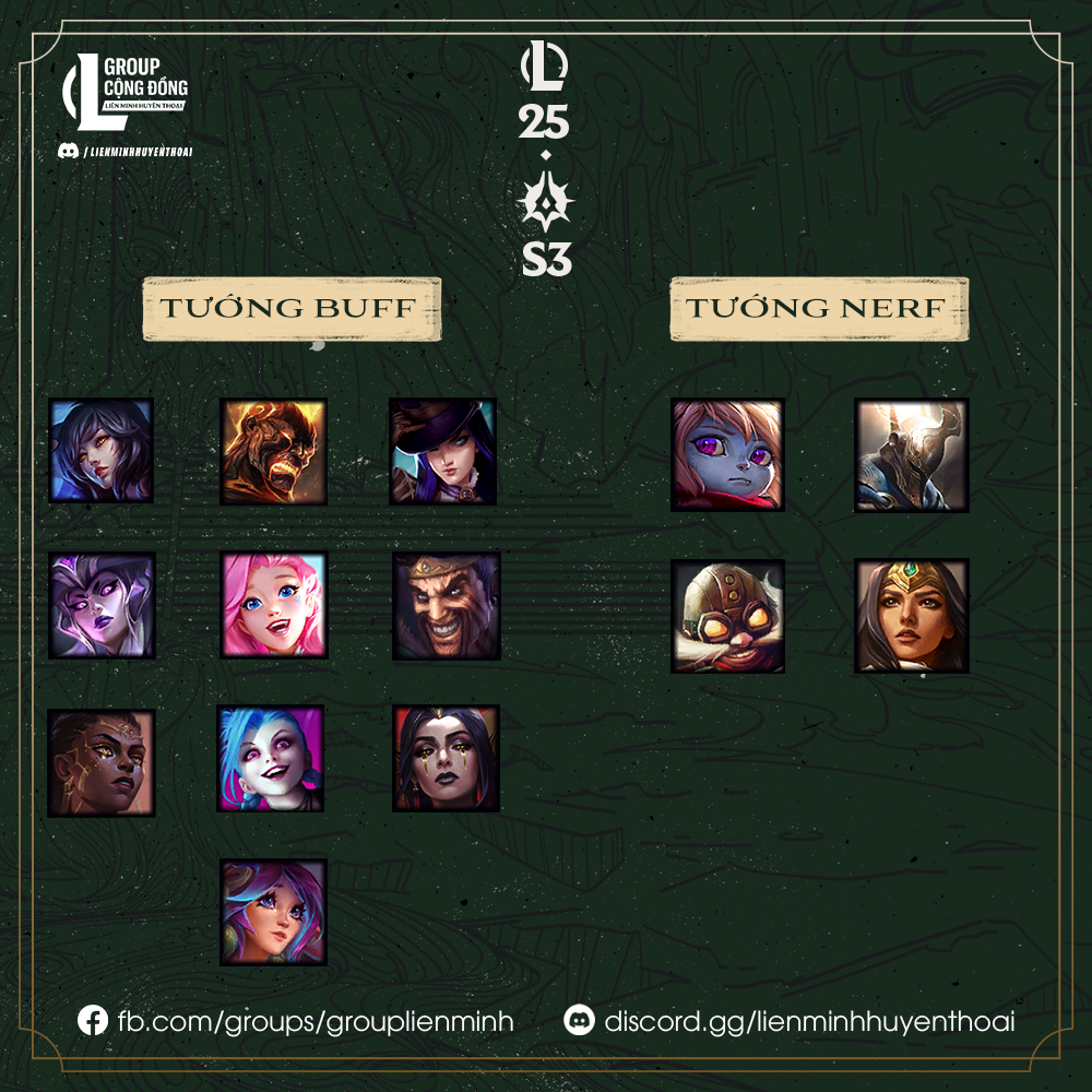 - Caitlyn, Jinx: Nhận buff chiến lược, kỳ vọng sẽ trở lại đấu trường chuyên nghiệp.