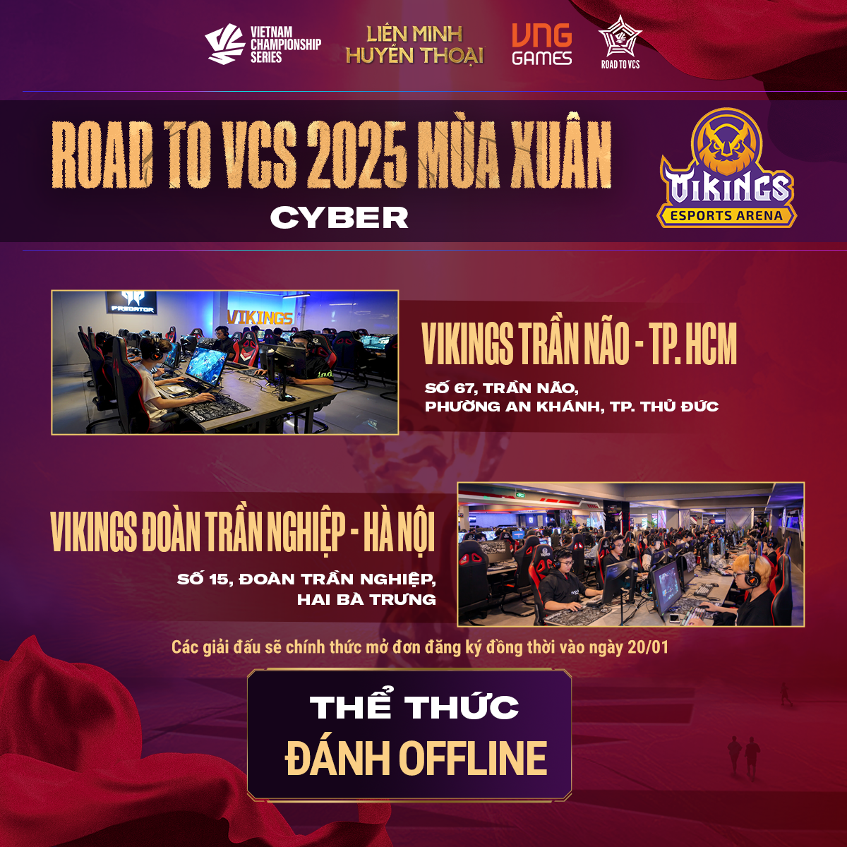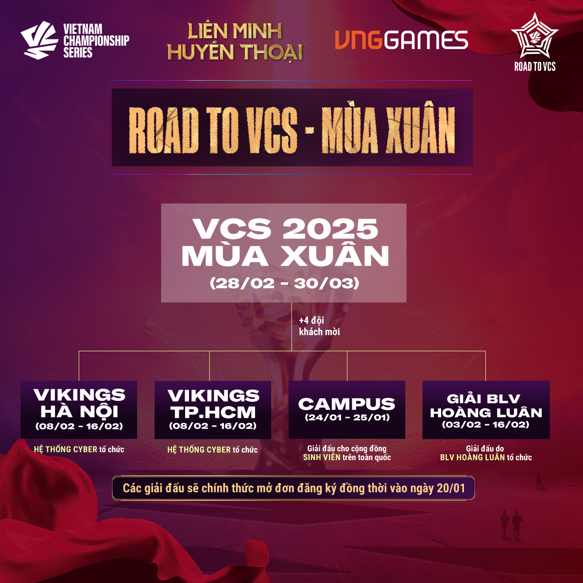 - Road to VCS Mùa Xuân 2025 (Vikings Hà Nội & TP.HCM): Diễn ra từ ngày 08/02 - 16/02/2025