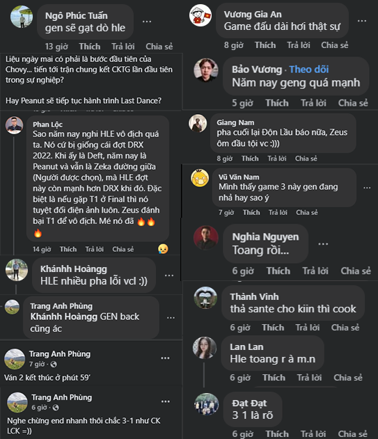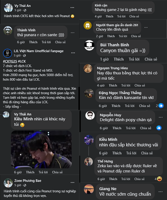 Cộng đồng sau trận gửi gắm đủ mọi cảm xúc – tự hào, xúc động, và cả những khoảng lặng đầy suy tư. Dù kết quả ra sao, những hình ảnh ấy – nụ cười của Peanut, ánh mắt của Chovy, và tinh thần chiến đấu không ngừng nghỉ của cả hai đội sẽ mãi được nhớ đến như minh chứng đẹp nhất cho tình yêu và niềm tin mà người hâm mộ dành cho LMHT.