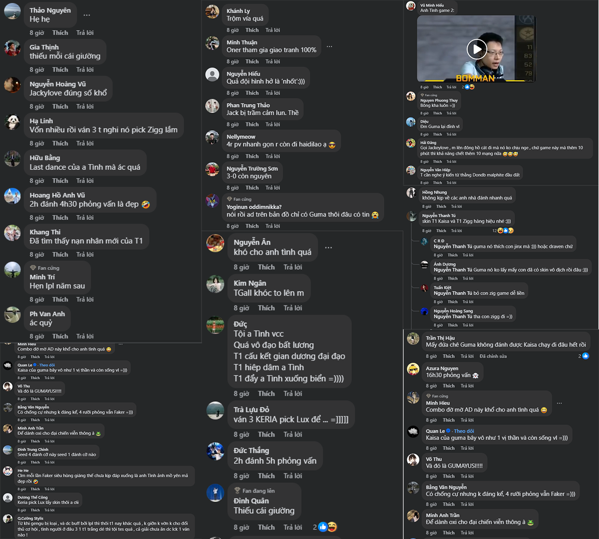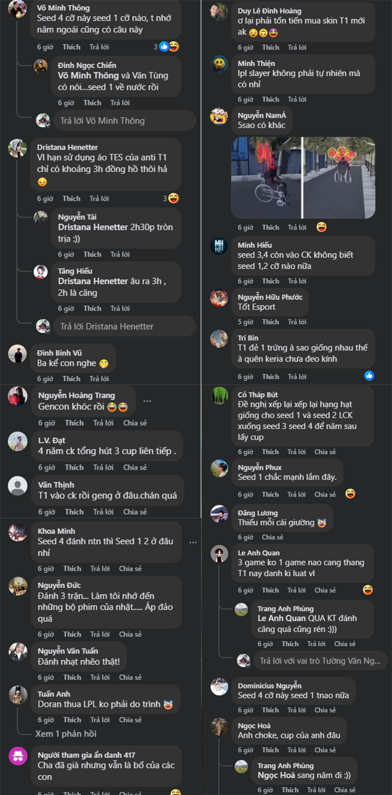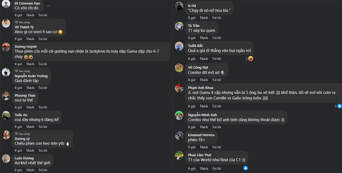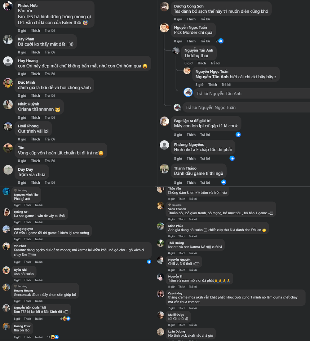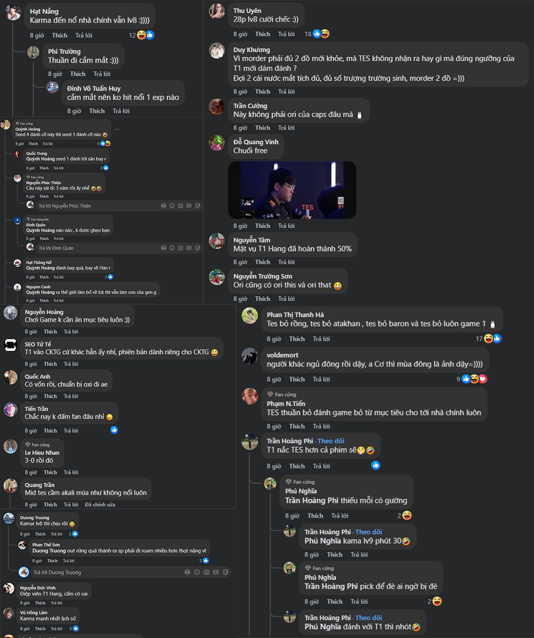 Đến game 3, T1 khép lại loạt Bo5 một cách hoàn hảo. TES cố thủ trong tuyệt vọng trước lối đánh như “đi tập LCK” của đối thủ. Fan Việt để lại hàng loạt bình luận hóm hỉnh nhưng đầy ngưỡng mộ: