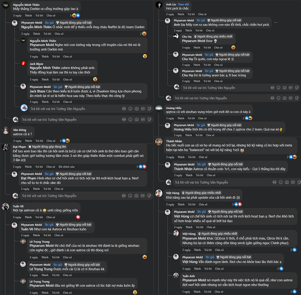 Nhiều người phấn khích khi nhận ra hình ảnh quen thuộc: “Họ thực sự mang Aatrox cũ trở lại.” Trong khi đó, không ít game thủ lo ngại về cơ chế hồi sinh – vốn ám ảnh cộng đồng suốt nhiều năm.
