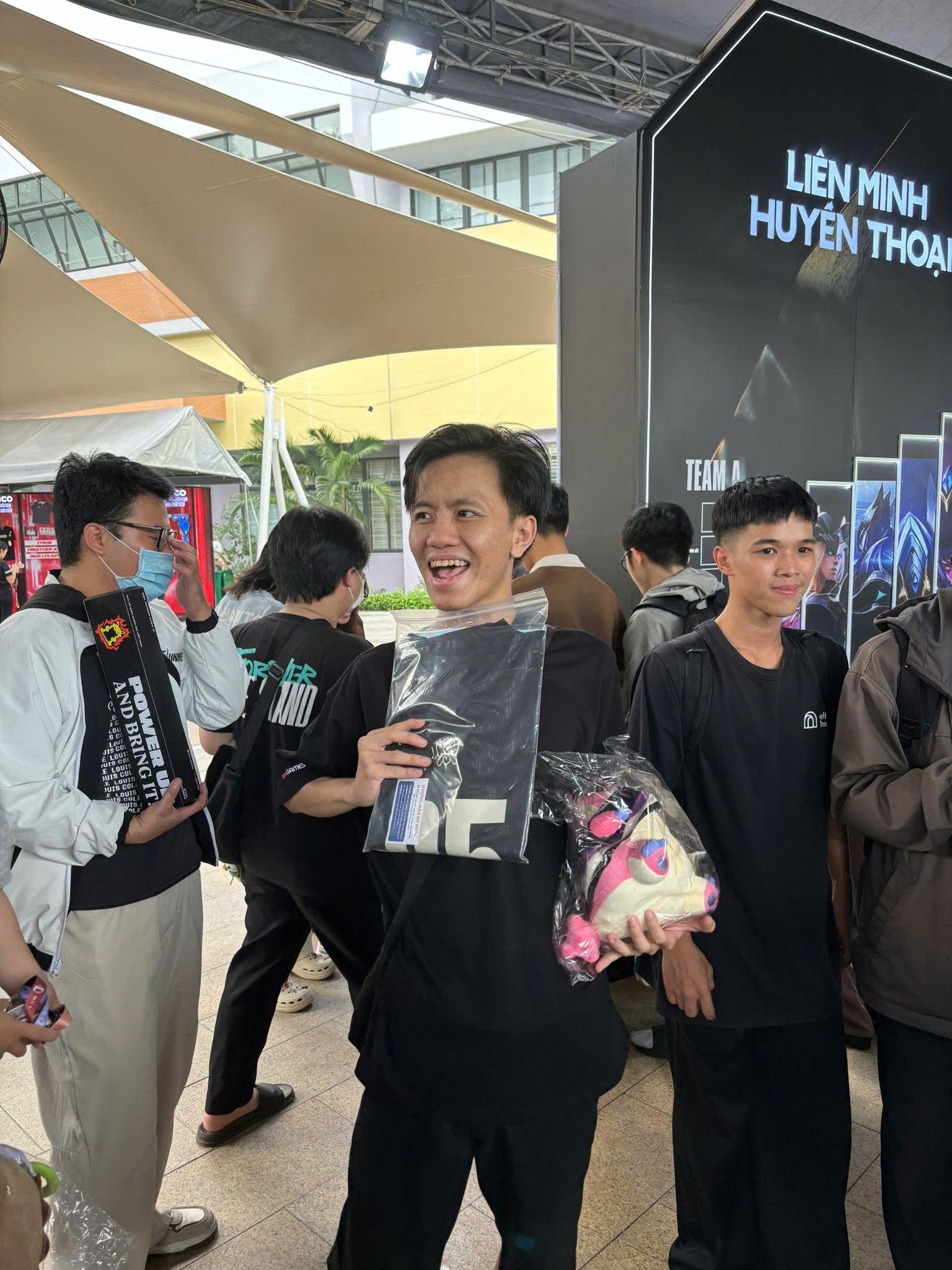Booth Liên Minh Huyền Thoại hôm nay đông nghẹt người, nhưng ai nấy đều rạng rỡ như vừa mở rương trúng skin huyền thoại. Tiếng cười, tiếng gọi nhau í ới vang khắp khu vực – không khí đúng chuẩn “vui tới bến”.