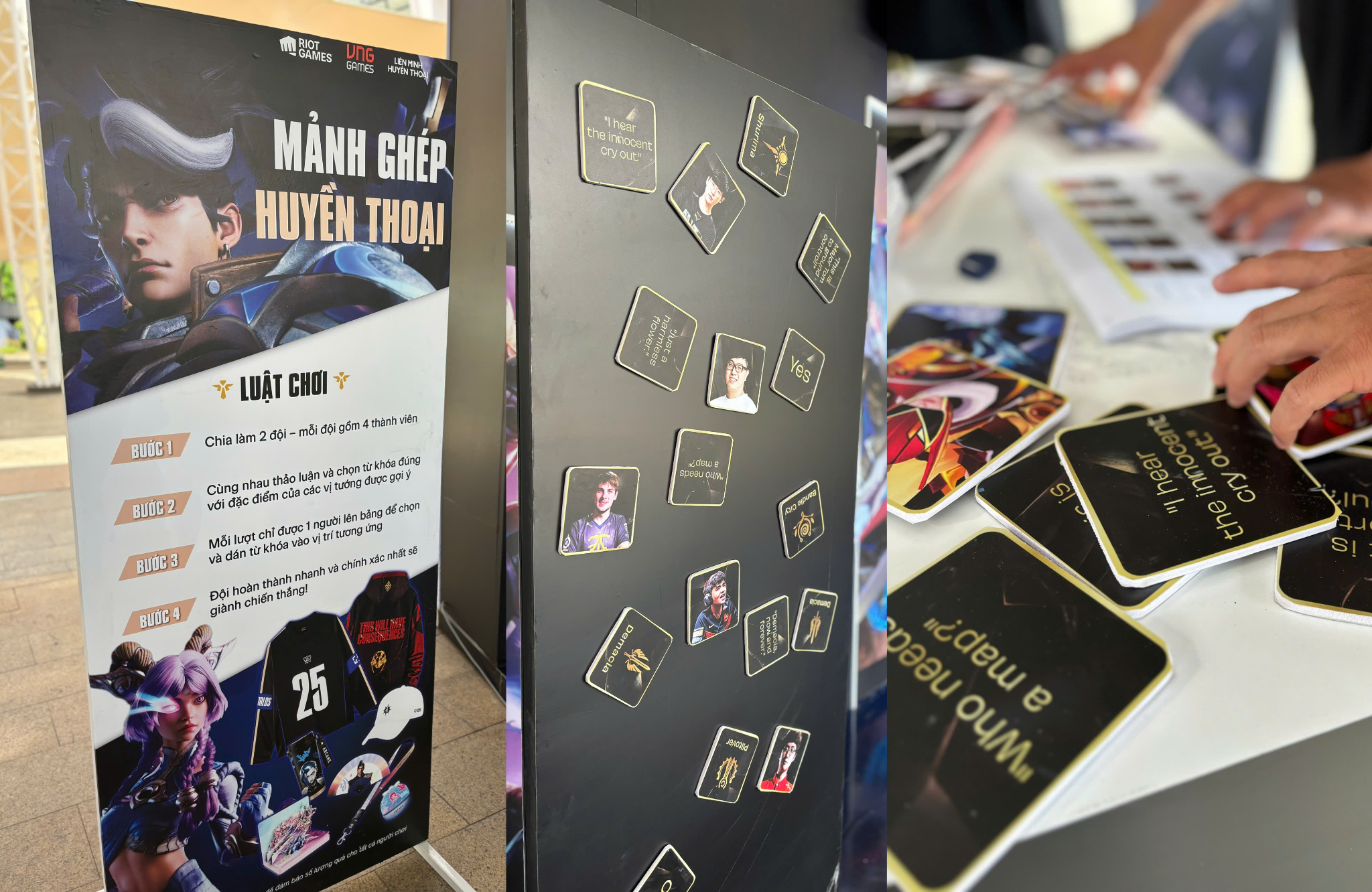 Nếu bạn có mặt tại booth LMHT, nhất định phải thử qua trò chơi này! Đoán đúng – cảm giác sung sướng chẳng khác nào vừa Pentakill giữa mid. Còn nếu đoán sai – cũng cười lăn lộn như khi lỡ dẫm bẫy Teemo.