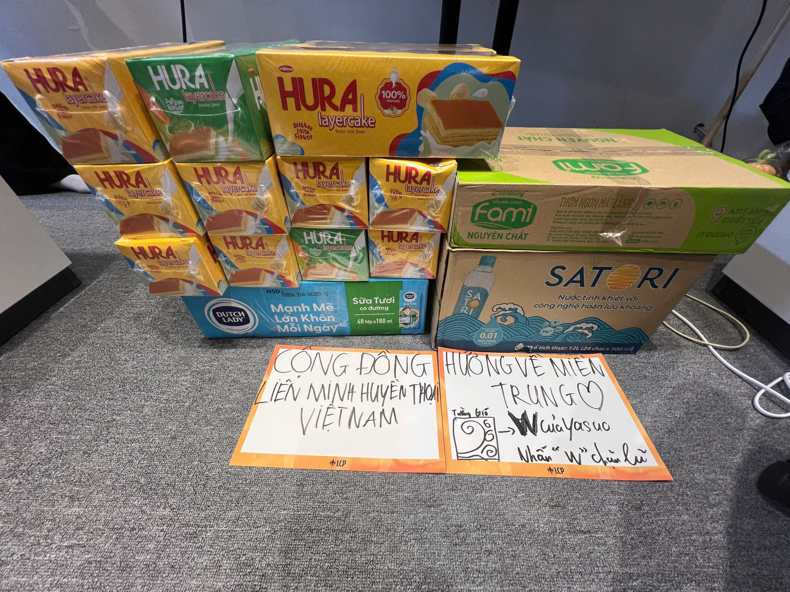 - Hỗ trợ nhu yếu phẩm: Cộng đồng đã chung tay chuẩn bị và đóng gói những thùng hàng gồm lương thực, sữa, nước uống và các vật dụng thiết yếu để kịp thời gửi đến bà con vùng lũ.