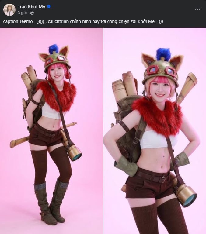Mới đây, cộng đồng Liên Minh Huyền Thoại Việt Nam đã không khỏi xôn xao khi ca sĩ Khởi My bất ngờ chia sẻ loạt hình ảnh cosplay Teemo với phong cách độc đáo và đầy mới lạ. Điểm đặc biệt nằm ở việc toàn bộ tạo hình được thực hiện bằng công nghệ AI, mang đến một phiên bản Teemo vừa quen thuộc, vừa khó đoán, nhanh chóng thu hút sự chú ý của người hâm mộ.