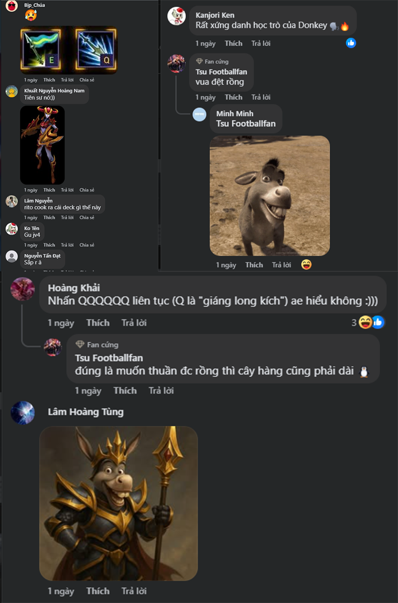 - "Vua đệt rồng", "Nhấn QQQQQQ liên tục ae hiểu không 🐧".