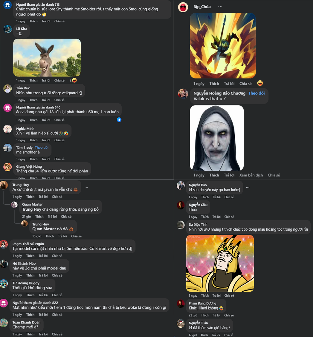 - Team chê: "Valak is that u?", "Khác gì Illaoi", "Tiêm hormone nam vậy", "Nhà Chuột thao túng à?"