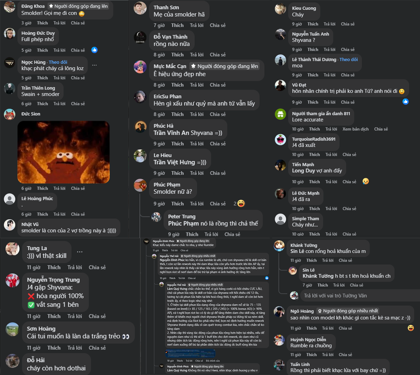 Phần khiến cộng đồng hào hứng nhất chính là hiệu ứng kỹ năng mới của Shyvana. Các game thủ không ngớt lời khen ngợi những pha “khạc lửa”, “nhổ phép” cùng hiệu ứng phép thuật cực kỳ mãn nhãn. Nhiều bình luận nhận xét rằng Shyvana mới vừa mạnh mẽ, vừa mang hơi hướng sát thương phép kiểu “Rumble bản rồng”.