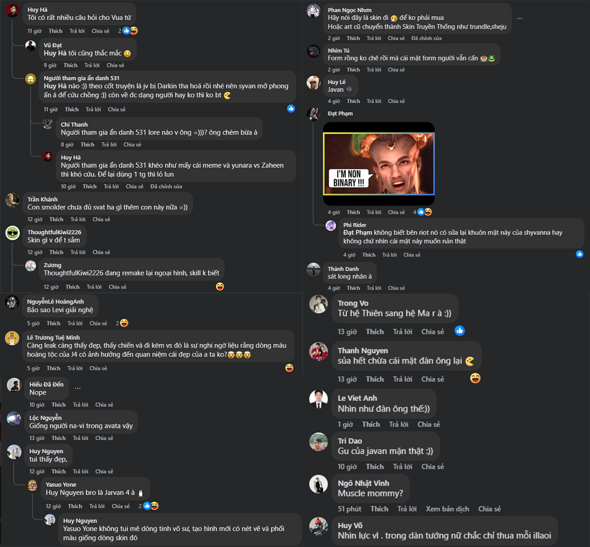 Nếu form rồng của Shyvana nhận được cơn mưa lời khen nhờ dáng vẻ hầm hố và thần thái “chuẩn long nhân”, thì form người lại gây ra không ít tranh luận. Nhiều fan cho rằng tạo hình mới quá cơ bắp, hơi “đực”, thậm chí có người ví vui: “Shyvana giờ như chị em song sinh của Illaoi”. Một số bình luận nổi bật:
